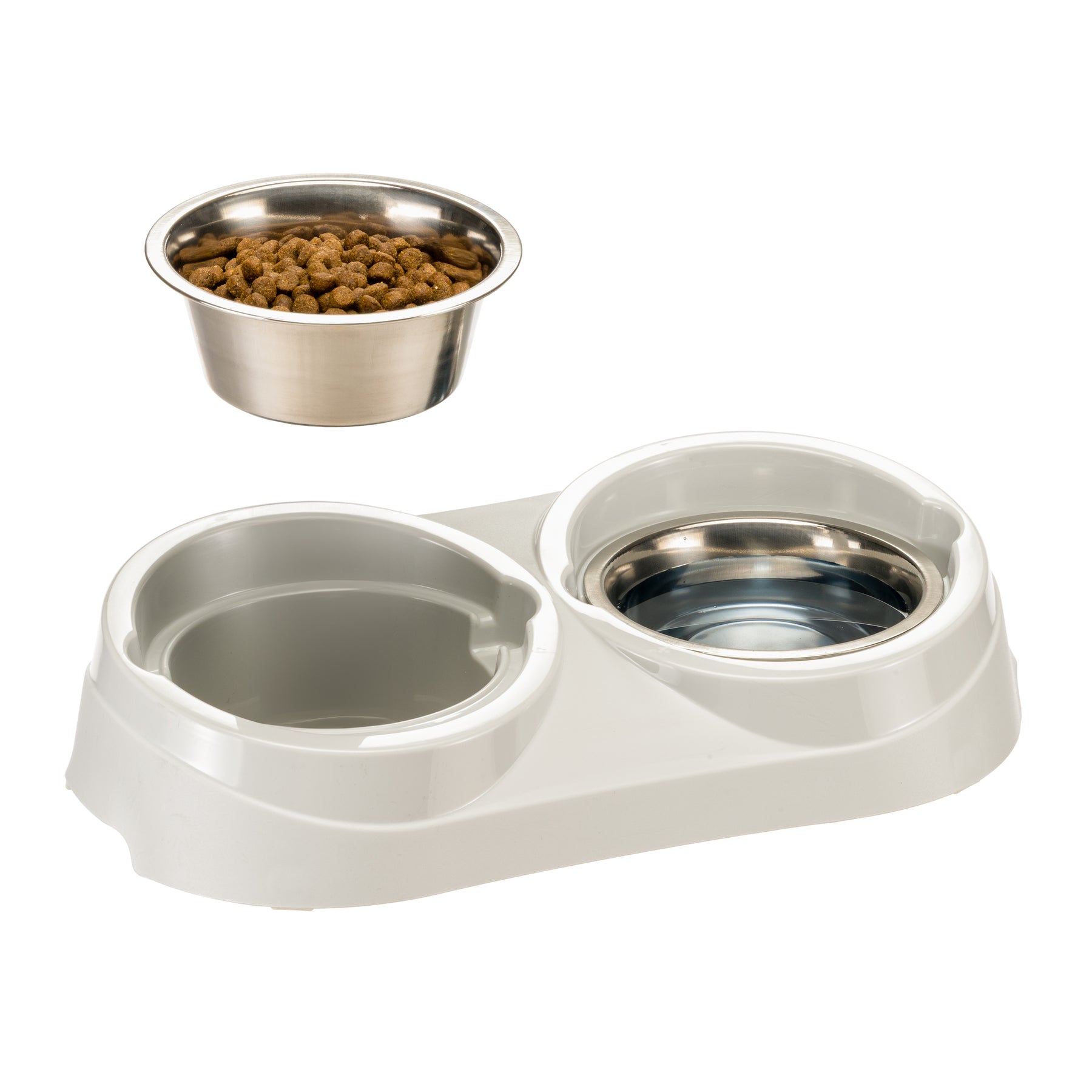 Duo Feed is a dual-purpose double feeding bowl and is the ideal accessory for providing your dog with food and water simultaneously, hygienically and safely. Duo Feed consists of stainless steel feeding bowls and a plastic bowl-holder. The holder has a contoured grip and non-slip stoppers.