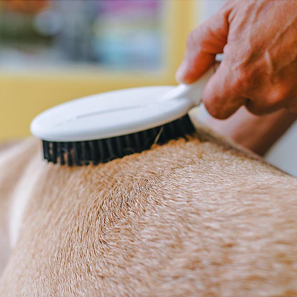 The GRO 5760 is a brush for cats and dogs suitable for all types of hair, be it short, medium or long. An essential accessory for the periodic grooming of your four-legged friend, it will ensure your pet's fur is always kept tidy and well cared for. Thanks to the polyamide bristles that gently and pleasantly work on the coat, the brush provides a stimulating massage whilst also ensuring easy combing of the hair, keeping it soft and shiny. Practical and easy to use, it is equipped with an innovative ergonomic rubber-coated handle, ensuring maximum comfort and a firm and safe grip during use. The durable, high-quality materials ensure the product is robust and long-lasting.