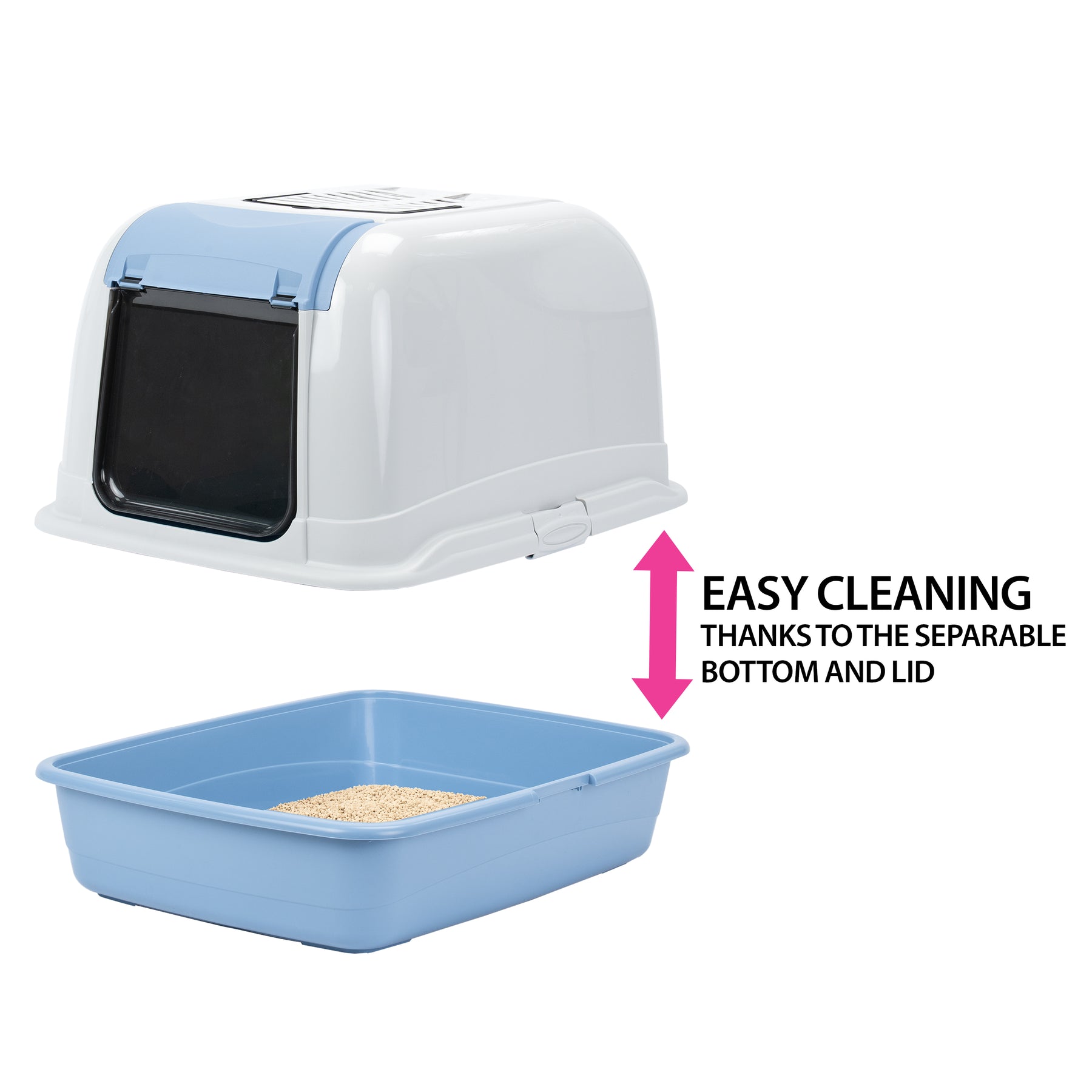 Very practical, the Maxi Bella thermoplastic resin litter box for cats features everything you need to give your cat privacy and tranquillity. Characterised by a wide front hatch for easy and fast cleaning. Its bottom is deeper to keep litter from spilling out, and it comes with a handle for easiness of movement.