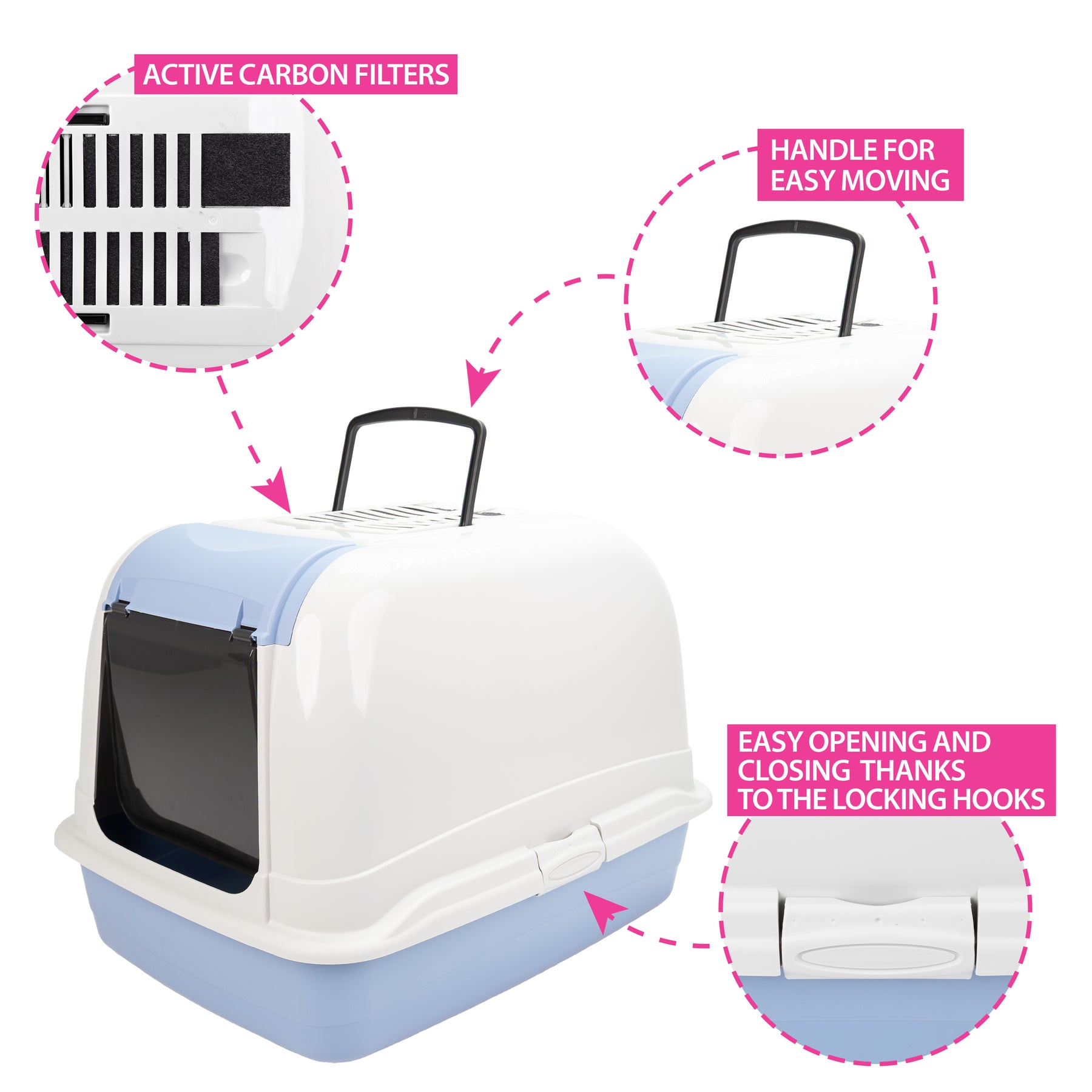 The Maxi Bella Cabrio litter box is safe and equipped with sturdy side hooks.