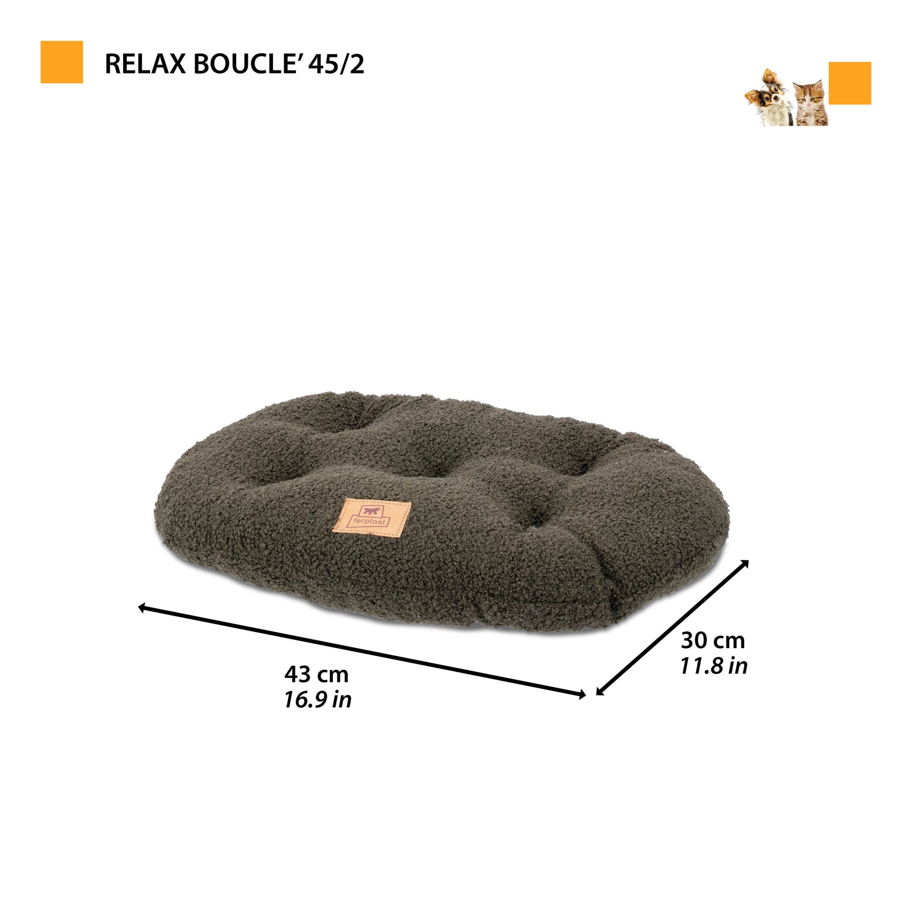 The cushion can be used alone as a bed or paired with Ferplast’s rigid plastic Siesta Deluxe beds by Ferplast. The number after the slash refers to the size of the Siesta Deluxe bed to which the cushion can be combined. For example, the Relax 55/4 cushion can be used in conjunction with Siesta Deluxe 4.