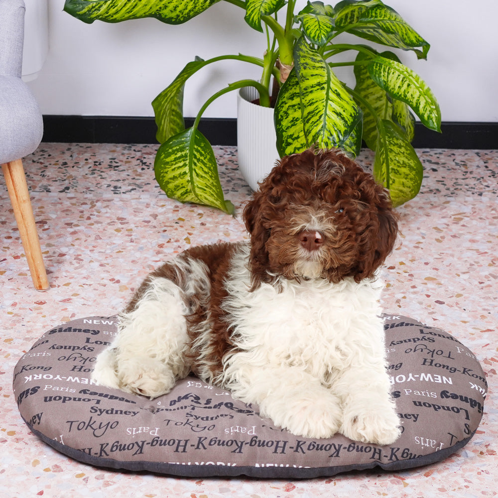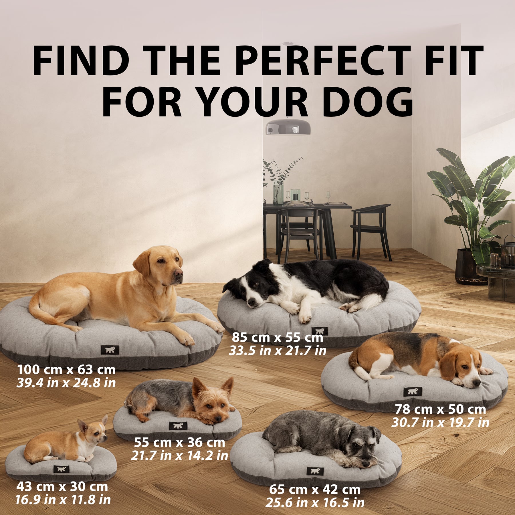 Relax is an oval-shaped cotton cushion for dogs and cats. It fits easily into the rigid plastic dog beds in the Siesta Deluxe range: the number after the bar refers to the Siesta Deluxe bed size to which the cushion can be combined. For example, the cushion Relax 55/4 can be used in combination with Siesta Deluxe 4.