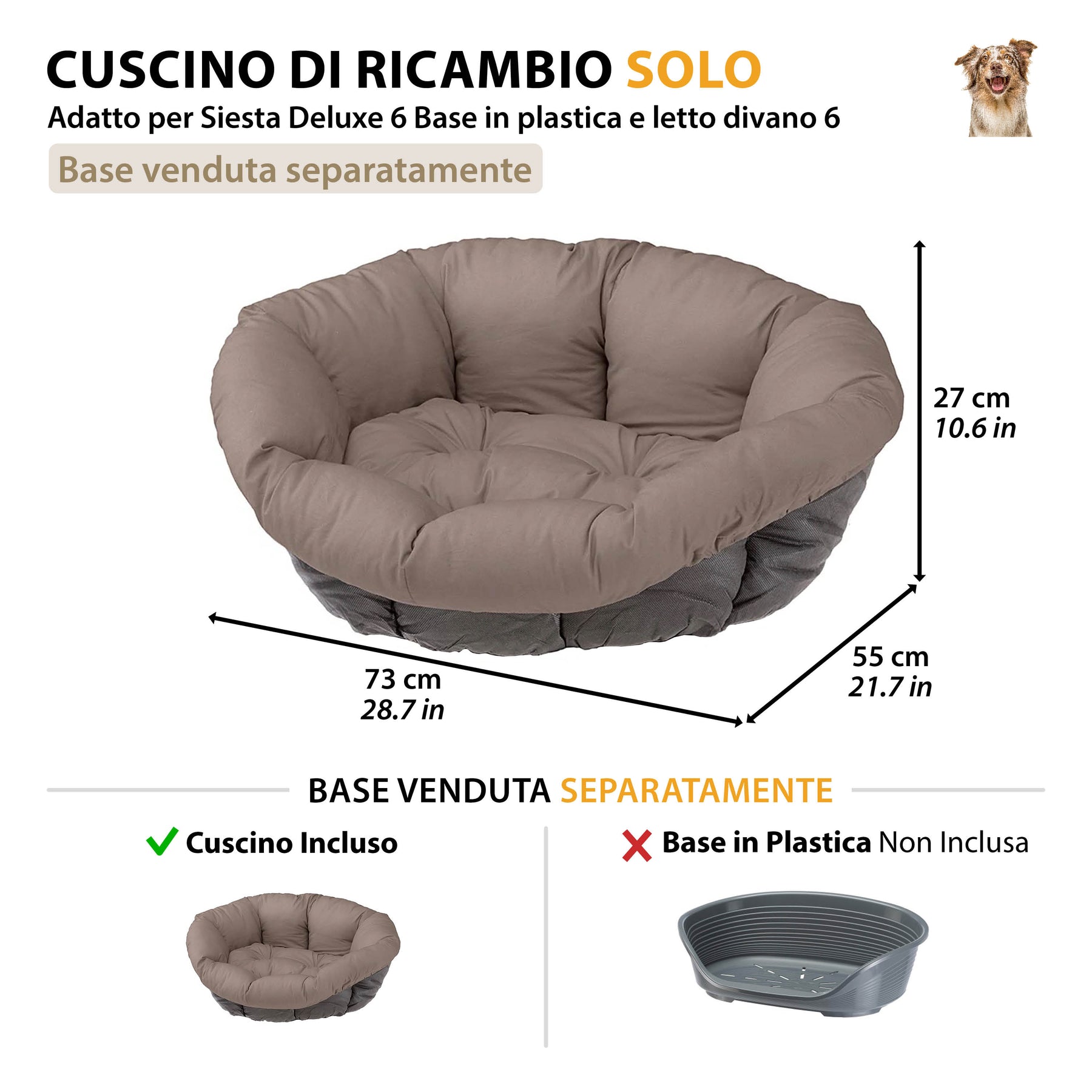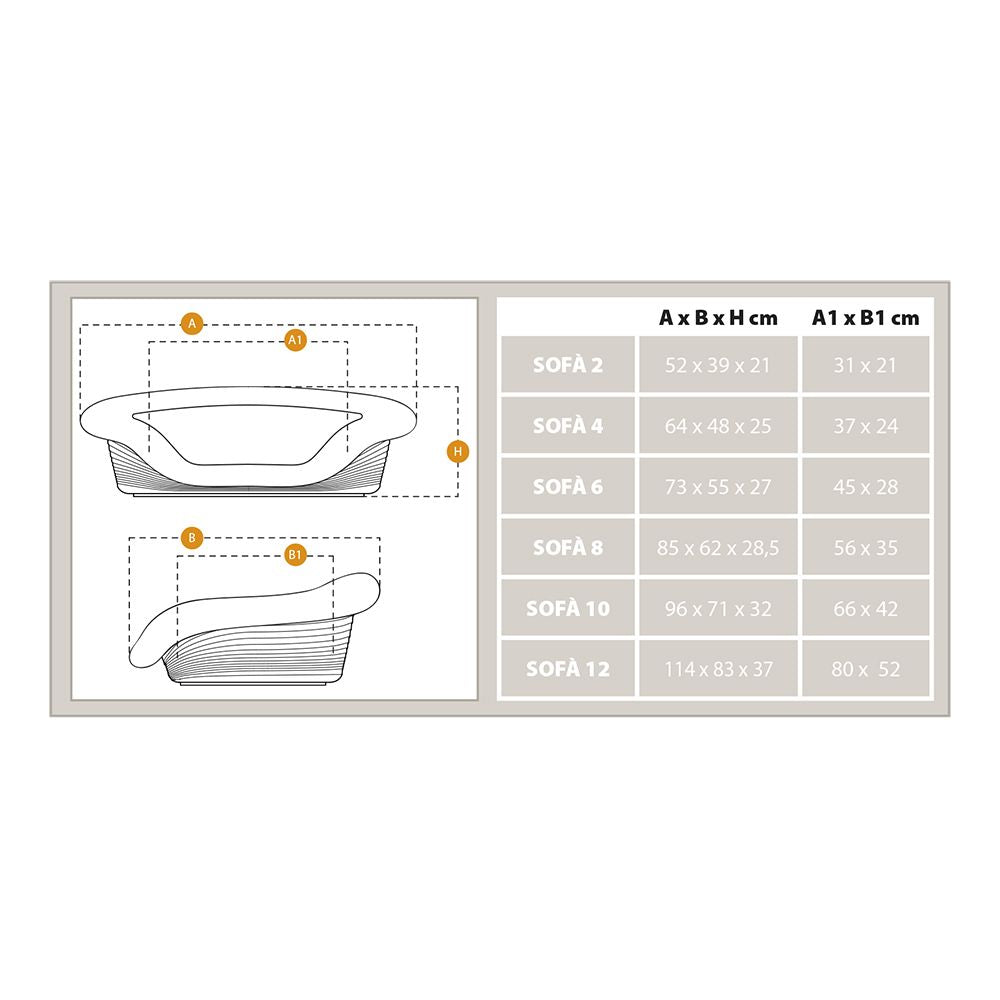 Are you looking for a spare cushion for your Siesta Deluxe plastic bed for dogs or cats, because the old cushion is ruined or worn out? Look no further - you've found it! It is Sofà Cushion! This padded cotton cushion is very soft and easy to place in beds, thanks to its specially shaped edges and the strap for securing it to the bed. When it gets dirty, it can be machine washed at 30°C. Sofà Cushion is available in six different sizes that can be matched to the plastic Siesta Deluxe beds.