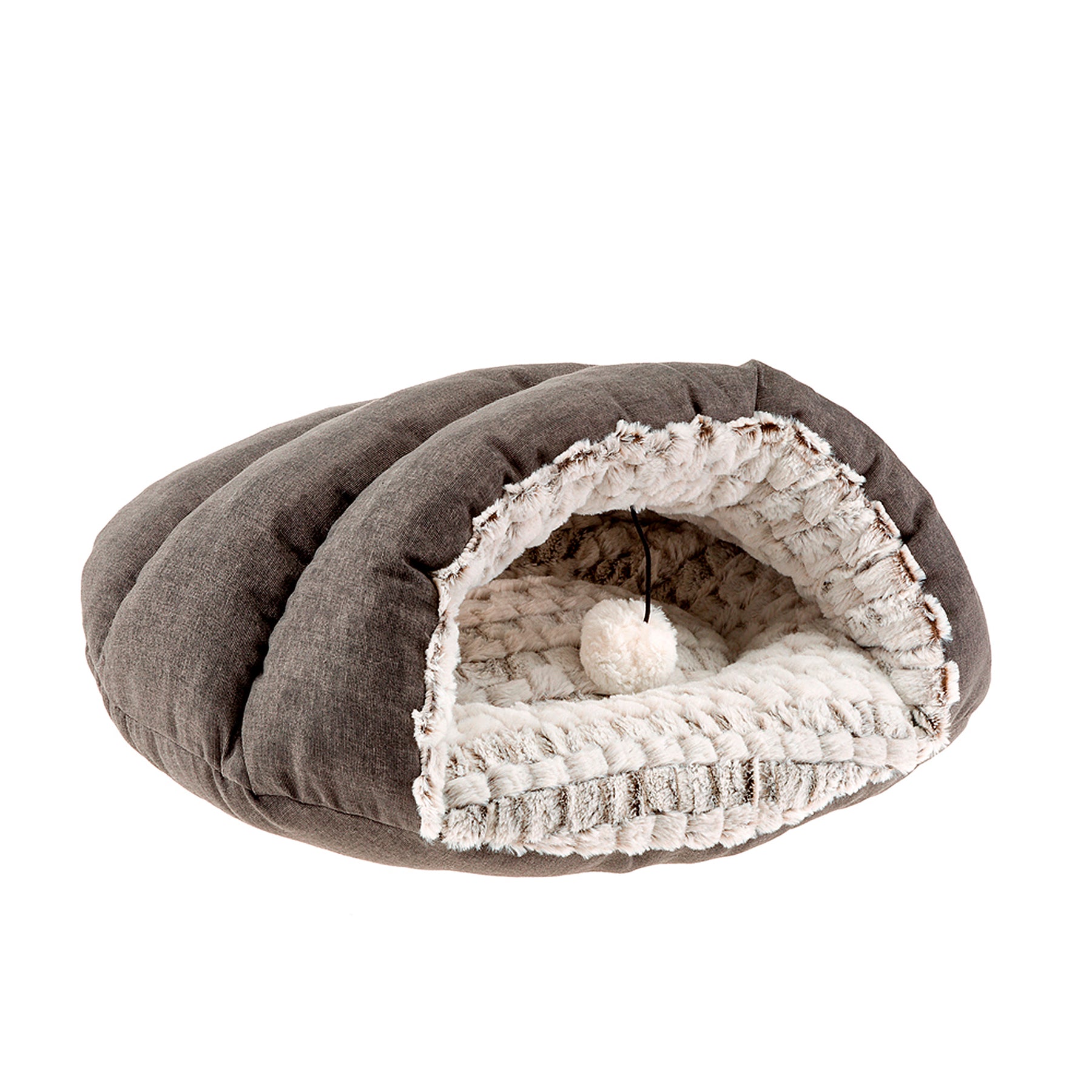 Tufli is a cat bed with a welcoming rounded shape and is designed for all those pets that particularly feel the cold. Inside it, your cat will feel protected and warm, in contact with the softness of the eco-friendly fur. The cushion is filled with padding to ensure optimal comfort. Your pet will also be able to keep an eye on the surrounding environment thanks to the handy opening at the front.