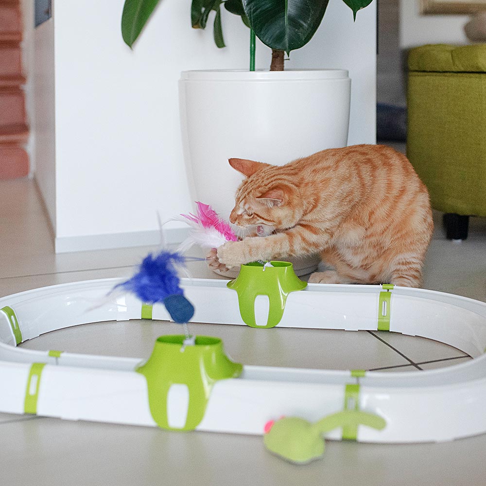 Turbine is a modular toy that can be used in combination with other accessories in the Clever & Happy range. In fact, thanks to the additional modules that can be purchased separately, you will be able to create various racetrack configurations and have fun creating an entire amusement park for your cat.