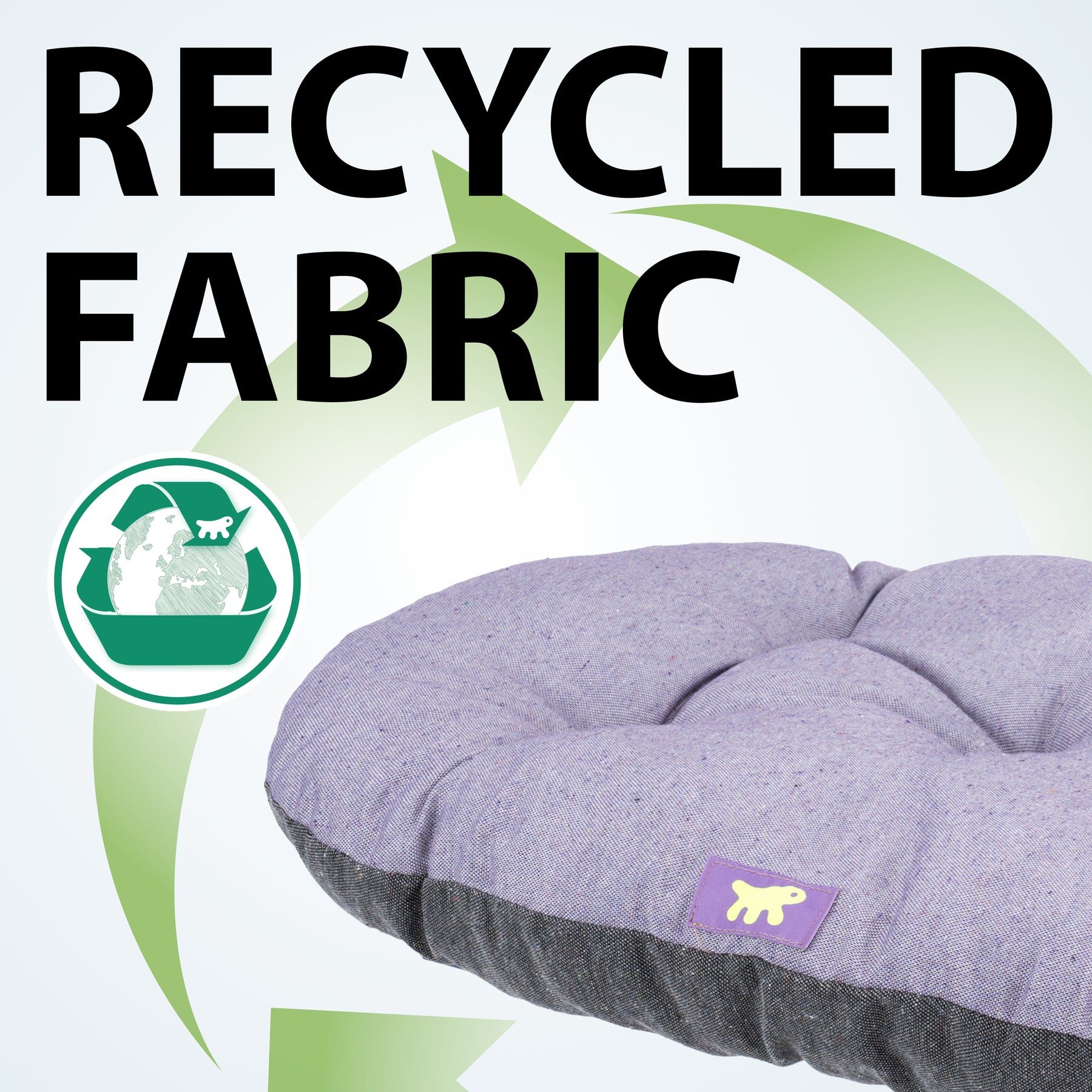 Padded cushion for dogs and cats made of recycled fabric
