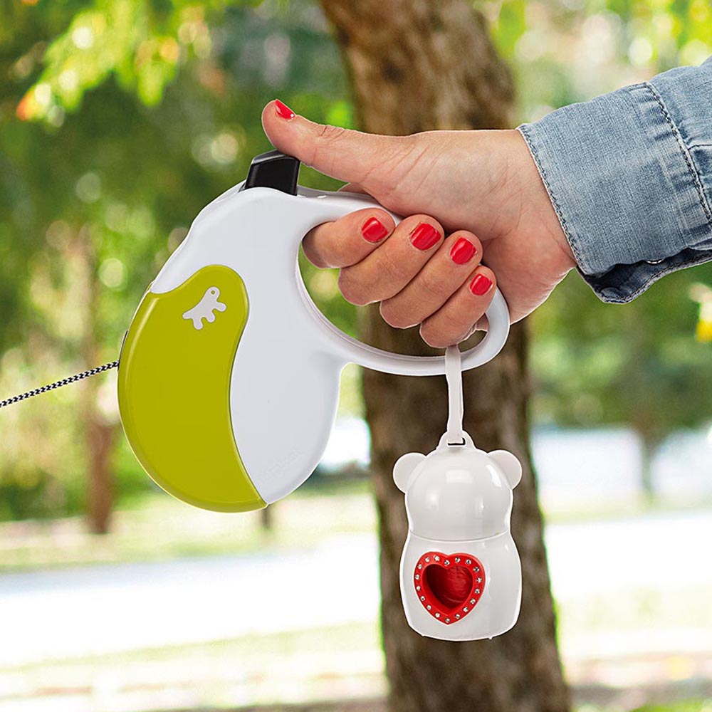Dudù is a practical holder ideal for taking the necessary hygienic bags with you when walking your dog and collect his droppings. Very compact in size, Dudù is available in some original shapes and colours, featuring an original and fashionable design entirely made in Italy. Here is a way to give a glamour touch to your dog's accessories! Besides, Dudù is complete with a practical clip, allowing it to to be attached to a lead. It is supplied with two rolls of hygienic bags.