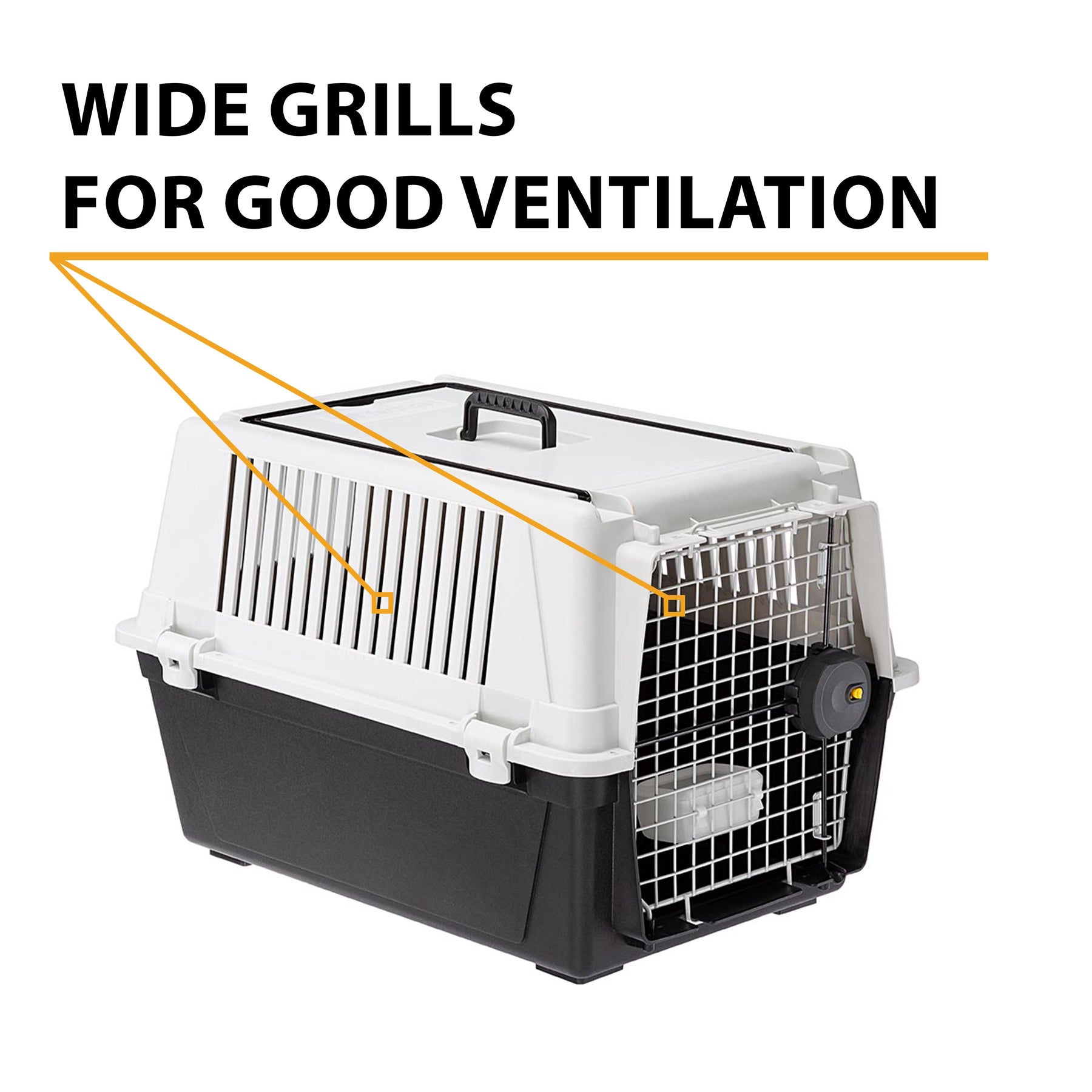 Featuring a door with a 25 x 25 mm mesh, Atlas 40 complies with current IATA regulations for the transport of pets when used with the specific net kit, to be applied to the side ventilation slots and available separately as an accessory.