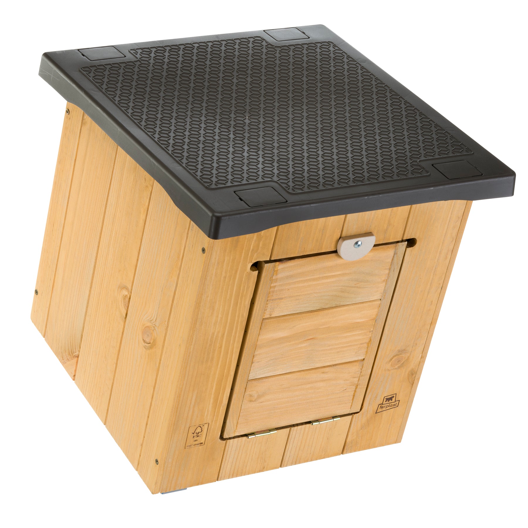 The Baita 40 kennel has plastic feet, so that it is well-isolated from the ground. The flat roof, also made of plastic, is removable for easy cleaning and can be used as a practical shelf or a relaxing area for your pet. The entrance door has a stepped structure that also acts as a handy access ladder. It has a locking system with a special safety lock. Lastly, the Vent System ventilation system ensures excellent internal ventilation and prevents the formation of damp, thus ensuring a dry environment for your dear four-legged friend.