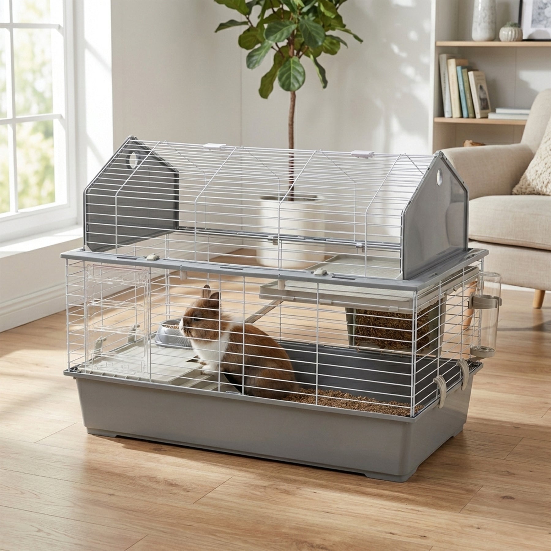 • A convenient ramp connects the rabbit house to the upper floor