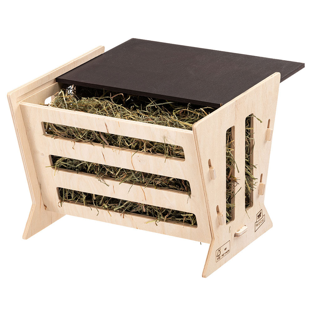 The feeder is essential for keeping the hay compact, the habitat clean and reducing waste.