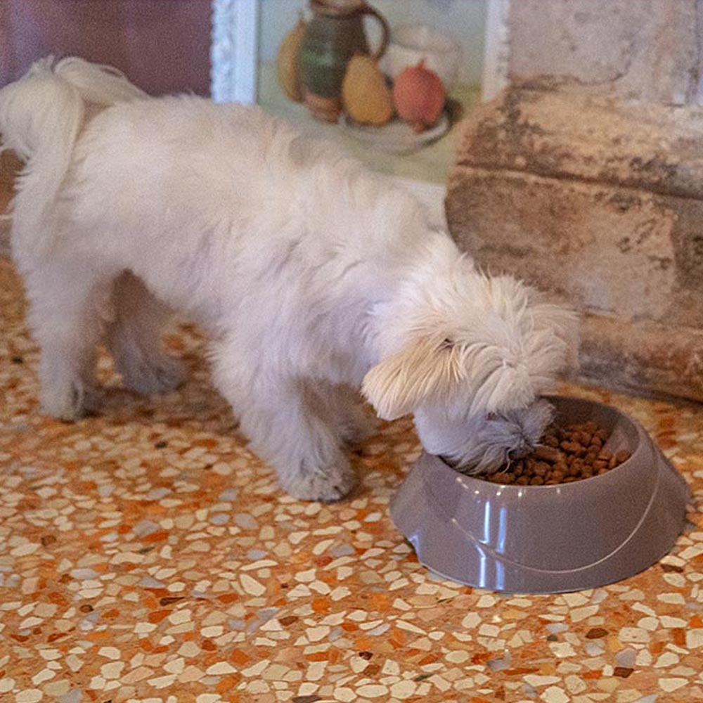 Magnus Slow are anti-gulping bowls for dogs with slow food release. The particular inner structure of these bowls was designed to slow down food consumption, forcing the animal to eat more slowly and to chew the food into smaller bites. This means your dog will feel satiated sooner and his digestion will improve, reducing bloating and regurgitation and limiting obesity. If your furry friend is a glutton who tends to binge, you now have a great alternative to traditional bowls!