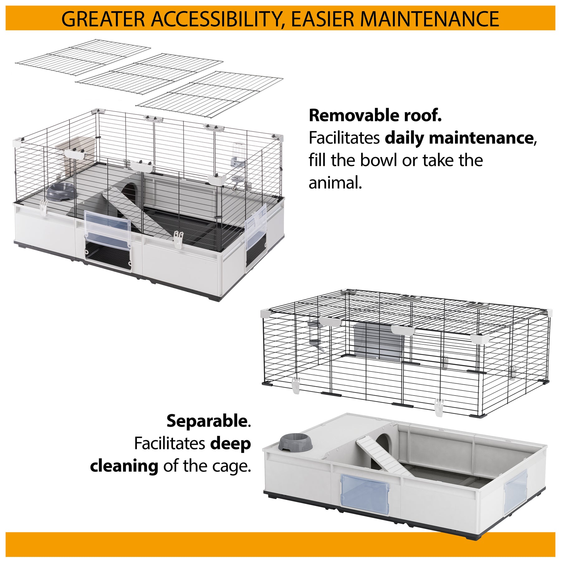 • Rabbit and guinea pig cage designed for maximum well-being of your pets