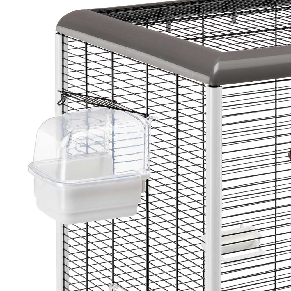 Rio 1 is a bath for canaries, small birds and exotic birds that allows your friends to bathe their feathers in complete tranquility. Made with non-toxic plastics, safe for the animal, it has a non-slip bottom and a practical perch for birds. It is also equipped with a transparent protection useful to prevent splashes from escaping. The bath adapts to various bird cages, can be easily assembled inside the habitat.