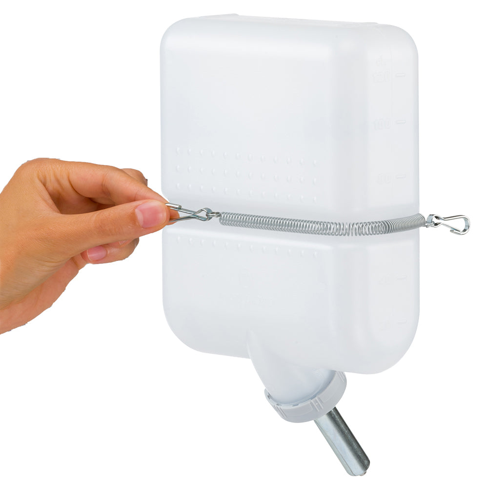 An indispensable accessory for traveling with your dog, Tirso is a practical water bottle for dogs made of non-toxic plastic, a safe and durable material, with a capacity of 1.4 litres. The drinker is easily fixed to the external mesh structure of your dog's carrier or cage, thus ensuring water is always available. It is equipped with a stainless steel spout and complete with a quick and safe spring fastening system with hooks. Tirso is a universal drinker, it can be used with all Ferplast dog carriers belonging to the Clipper range (models 4, 5, 6 and 7), Atlas Car Scenic, Atlas 40, 50, 60, 70 and 80. Also suitable for the Superior and Dog-Inn dog cages also by Ferplast.