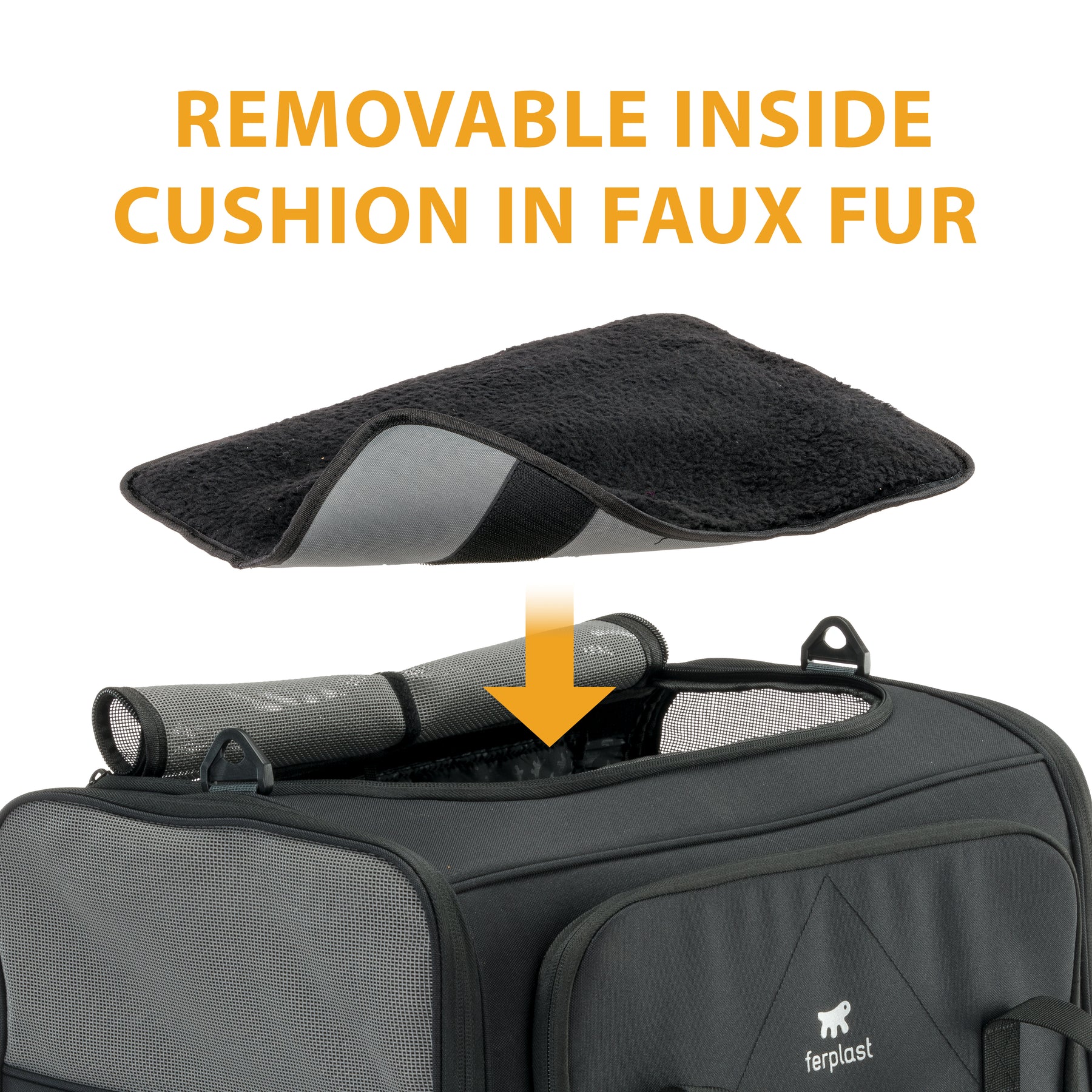 - Includes a soft faux-fur cushion, removable and washable, ensuring maximum comfort for your pet