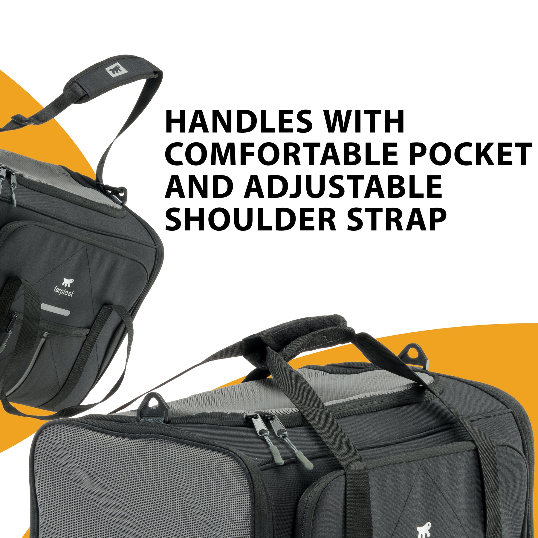 Designed with the owner's comfort in mind, this soft carrier features an ergonomic handle and padded adjustable shoulder strap, making it easy to carry in any situation. A back strap allows the carrier to be attached to a suitcase, making it perfect for air or train travel. Spacious integrated pockets are ideal for storing snacks, accessories, or travel documents, adding extra convenience. Reflective elements improve visibility in low-light conditions, enhancing safety during nighttime travels.