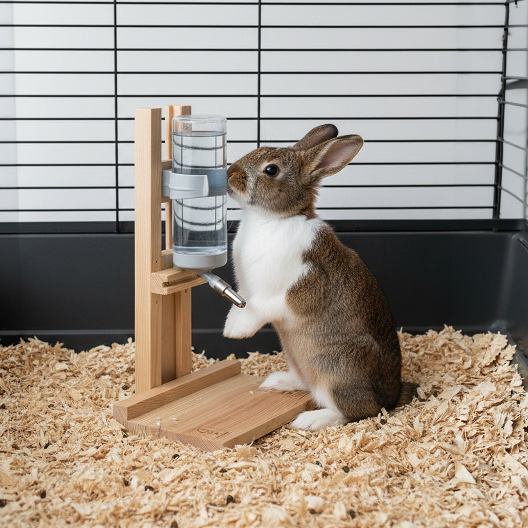 This wooden drinker holder, especially ideal for the Drinky series, has a solid support base and can be placed inside your pet's habitat in the most suitable and comfortable position to reach. It allows you to fix the drinking bottle using a special plastic hook, adjustable in height, and thus ensure water is always available for the little guest.