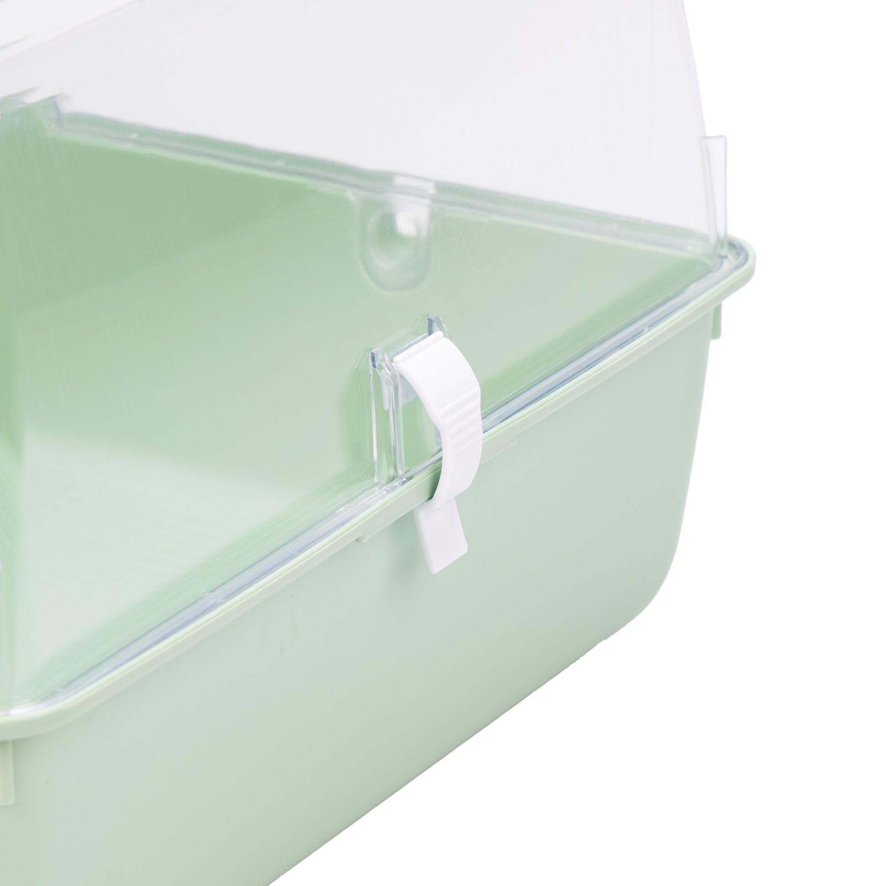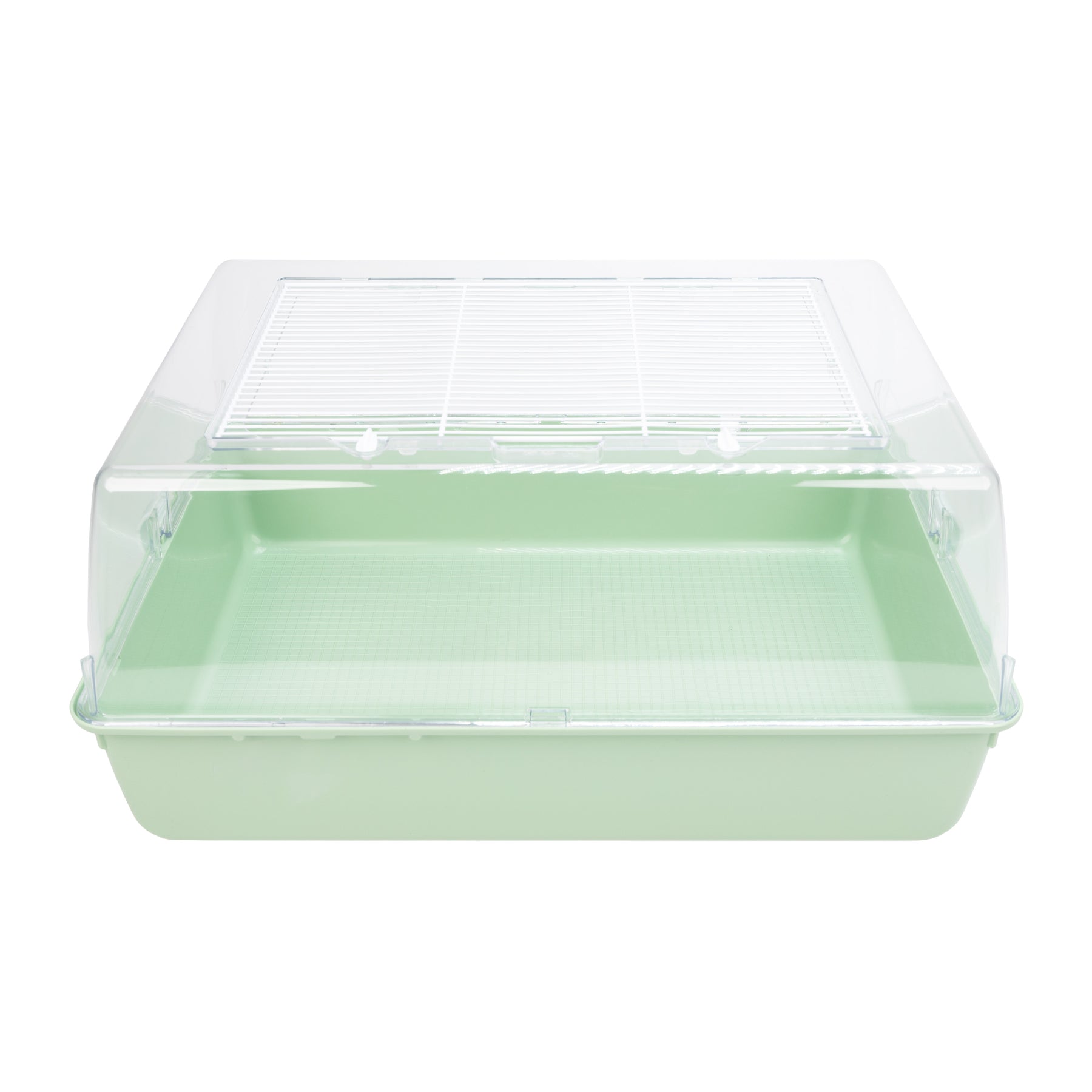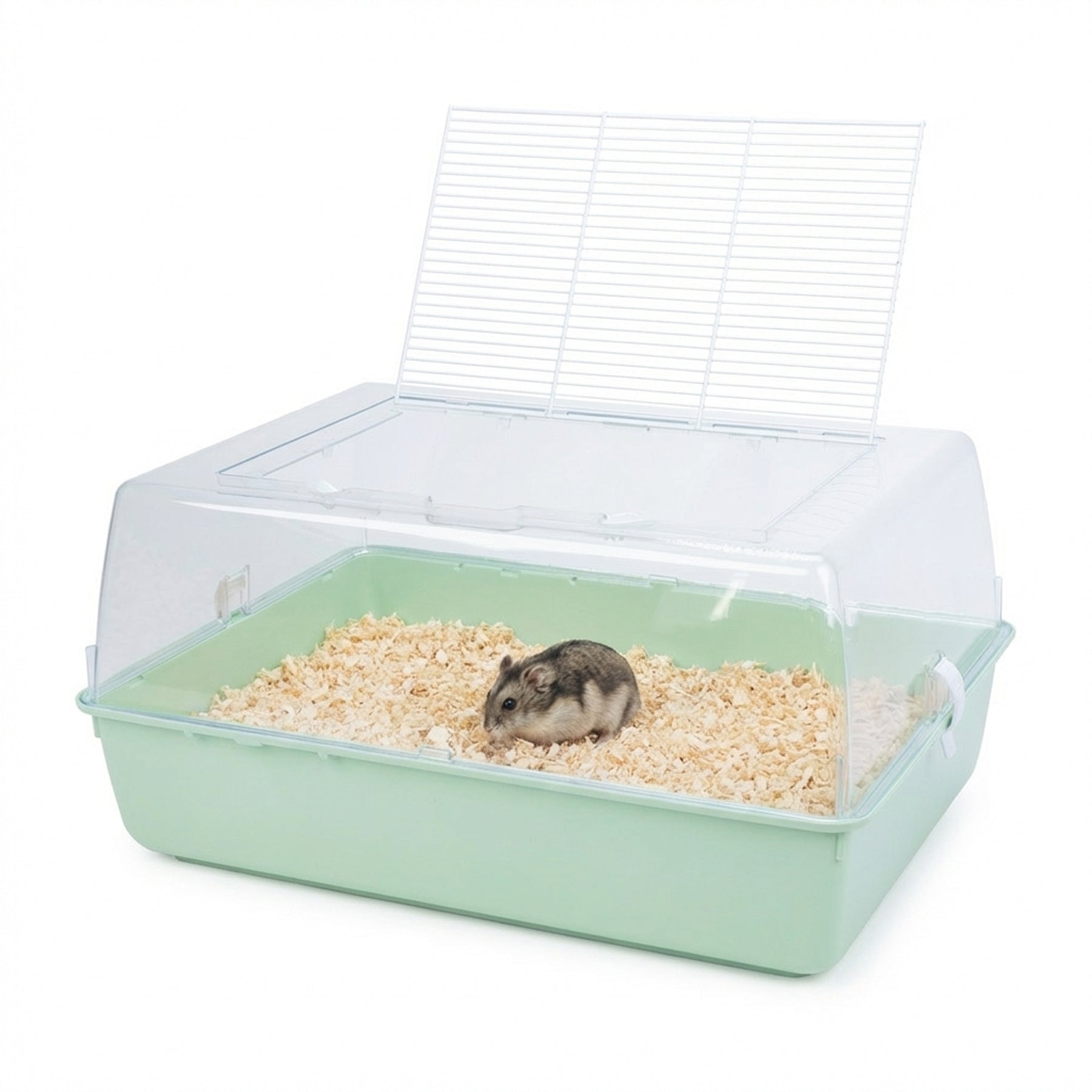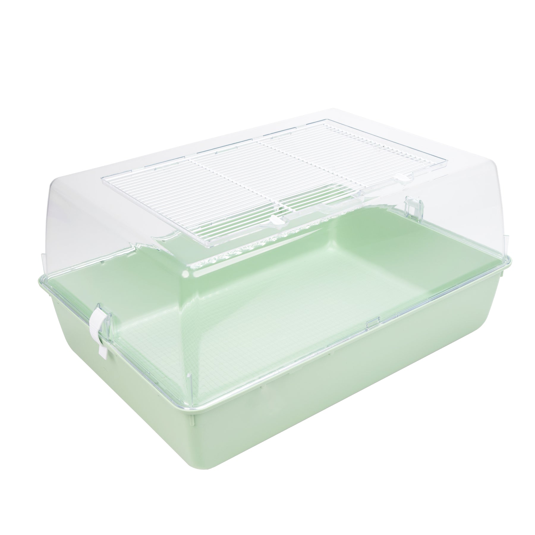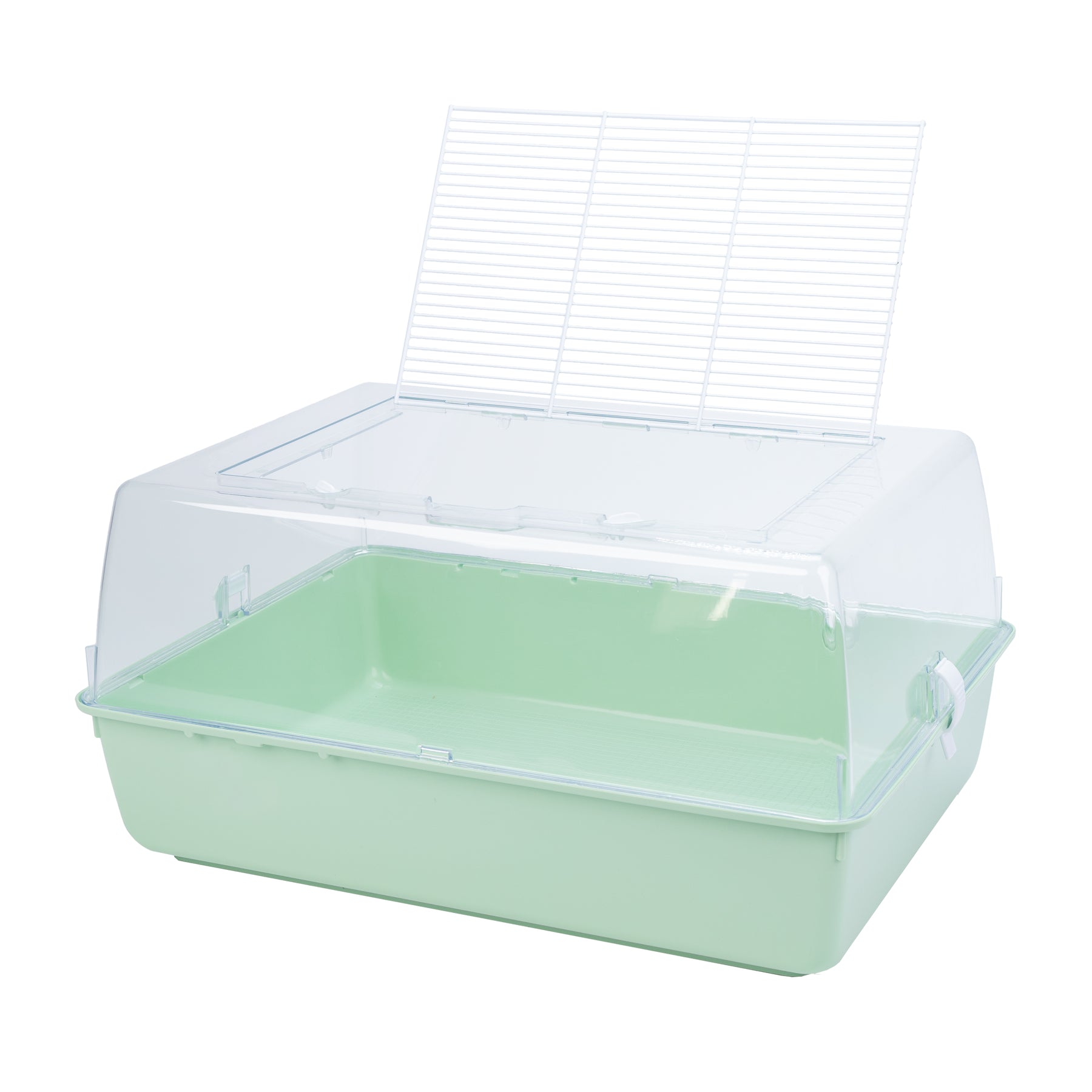 Mini Duna Multy es una jaula plástica con un techo transparente y una malla de alambre para asegurar el flujo de aire adecuado. Para seguridad de su mascota, hay dos pequeños clips en la parte superior que permite mantener la red cerrada herméticamente. Liberando los clips a los lados, puede separar el techo de la base y proceder con la limpieza.