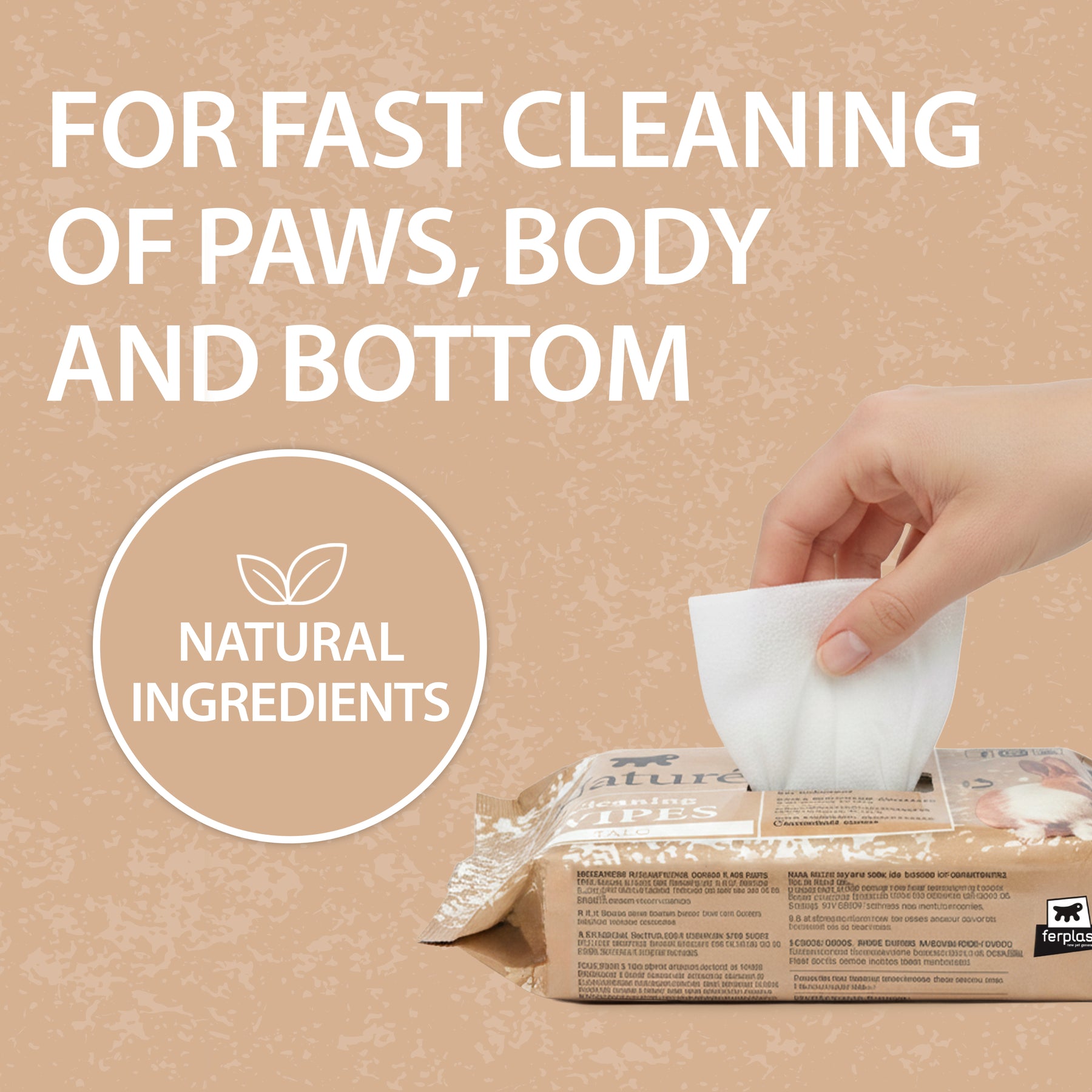 La textura suave pero resistente permite eliminar fácilmente la suciedad y las impurezas sin estresar el pelaje ni molestar al animal, haciendo que estas toallitas húmedas para pequeños animales sean ideales para una limpieza rápida y controlada. El envase con cierre de 15 toallitas es compacto y fácil de transportar, perfecto para llevar siempre a mano durante viajes o desplazamientos.