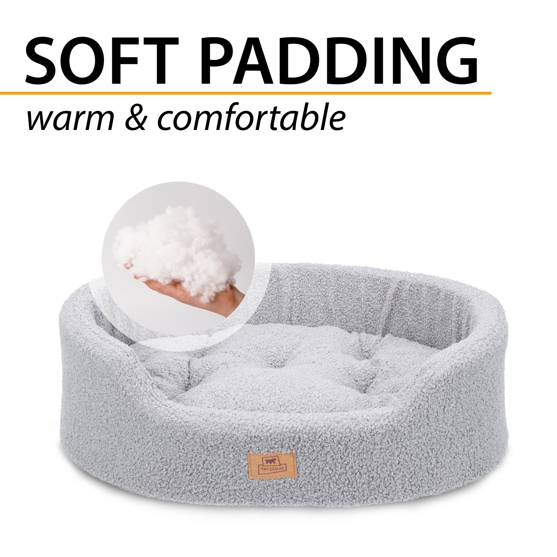 La cama Dandy Bouclé para perros y gatos combina estilo y confort en un lecho elegante y acogedor. Presenta altos laterales acolchados con un cojín interior extraíble, que ofrece a tu amigo de cuatro patas apoyo, protección y bienestar durante el descanso. En la parte frontal, la entrada rebajada facilita el acceso incluso a los animales más pequeños o de edad avanzada.