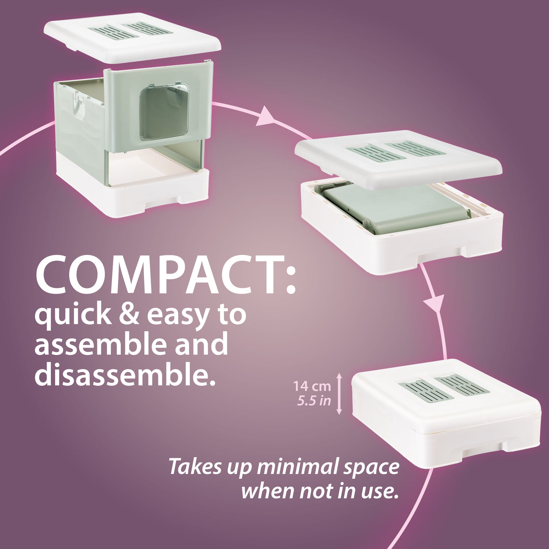 - Diseño envolvente y compacto para reducir la dispersión de arena y orina