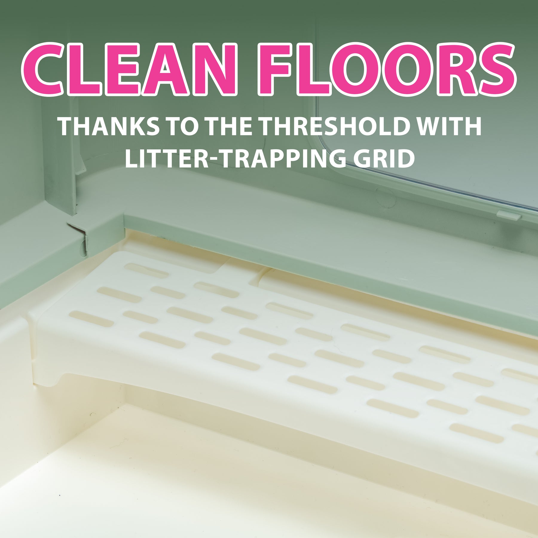El diseño anti-fugas ayuda a contener la dispersión de orina y arena, mientras que la rejilla ubicada en la entrada recoge eficazmente los restos que puedan quedar en las patas del gato, evitando así que la arena se esparza por el suelo.