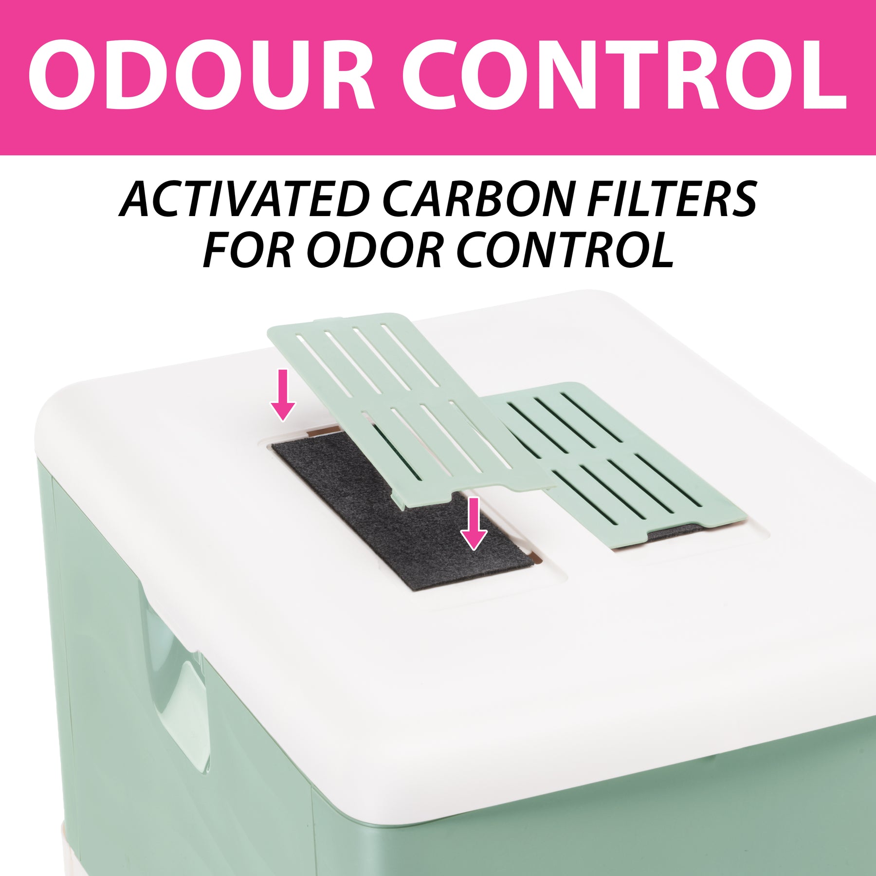 - Viene con 2 filtros de carbón activo que reducen los malos olores