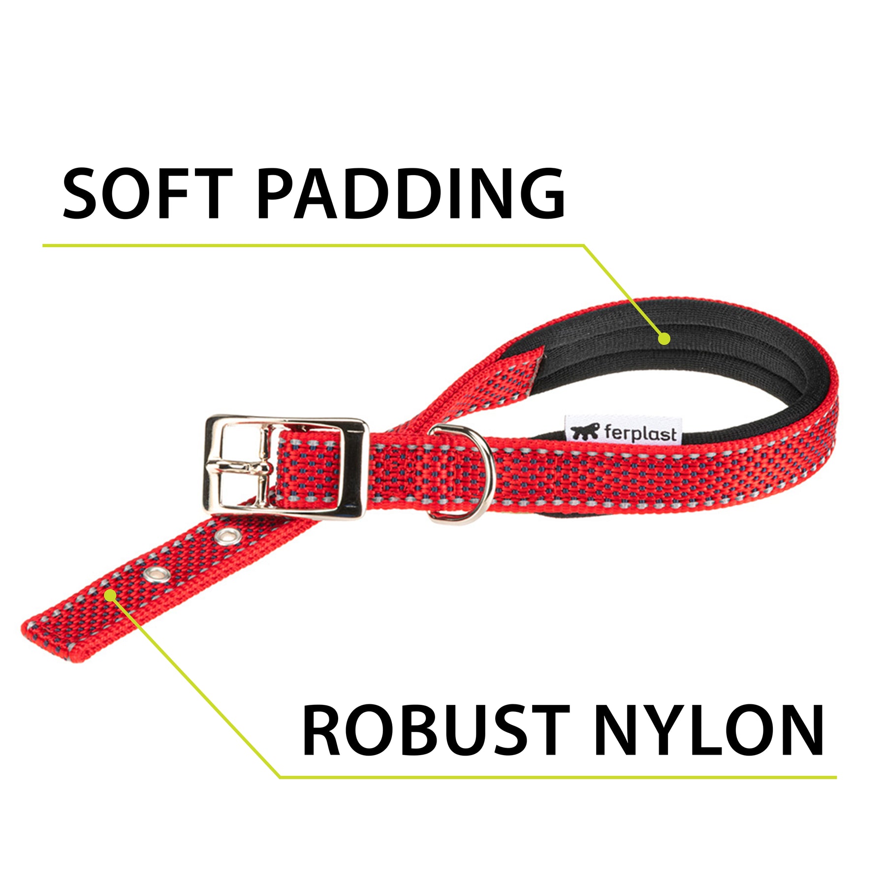 The Daytona Deluxe dog collar is made of sturdy and elegant fabric, featuring a four-hole adjustment system and a refined metal buckle. Thanks to the soft padding of the internal webbing, it is particularly comfortable in contact with your friend's neck. In addition, it is equipped with reflective seams that allow it to be visible even in low light conditions, and therefore ideal for evening walks with Fido.