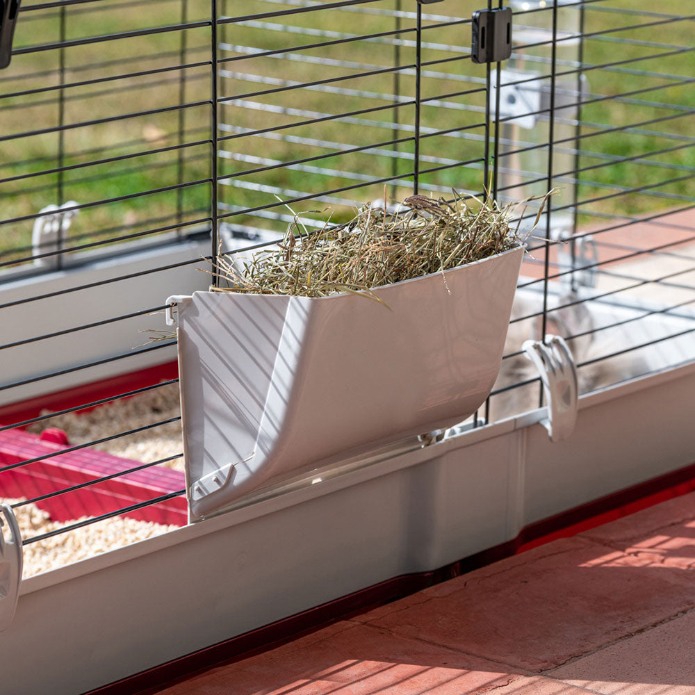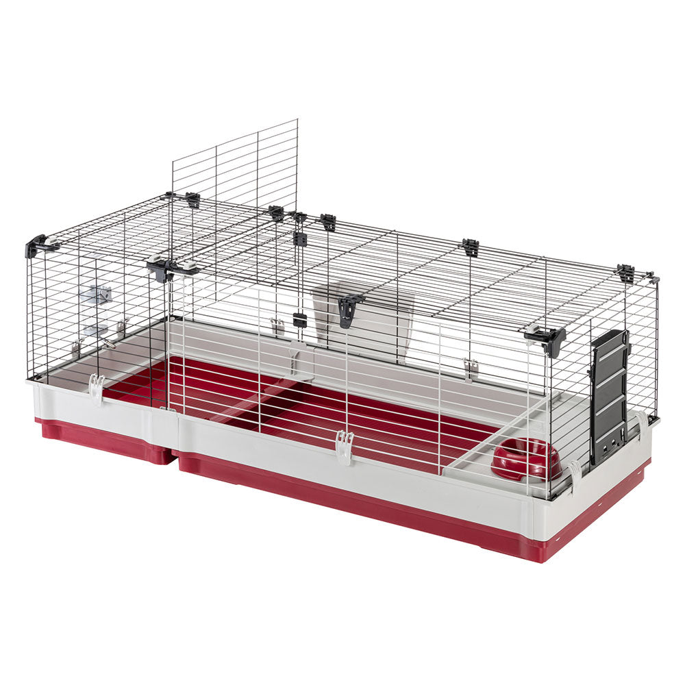 The Krolik 140 model is really large, also ideal for hosting several rabbits together and including all the comforts: inside, it has a comfortable plastic house with bowl, hay feeder and drinking bottle. Furthermore, on the side of the cage, you will find a comfortable ladder that allows the animal to go out and enter independently and move freely around the house. The habitat is complete with an extension of 40 cm in length, separated from the main cage by a special removable grid. This module is ideal for allowing bunnies to build their own nest leaving them all the peace of mind they need.