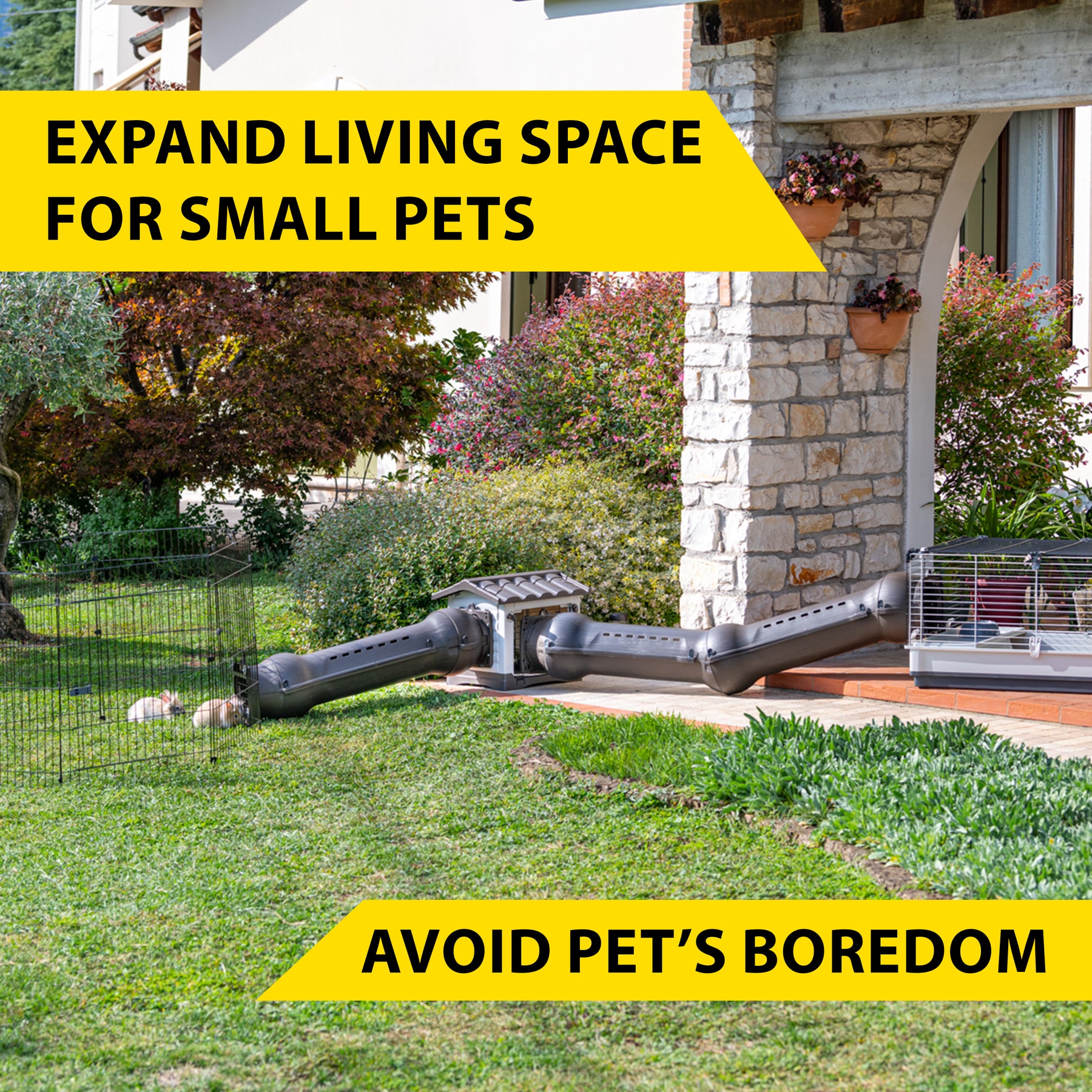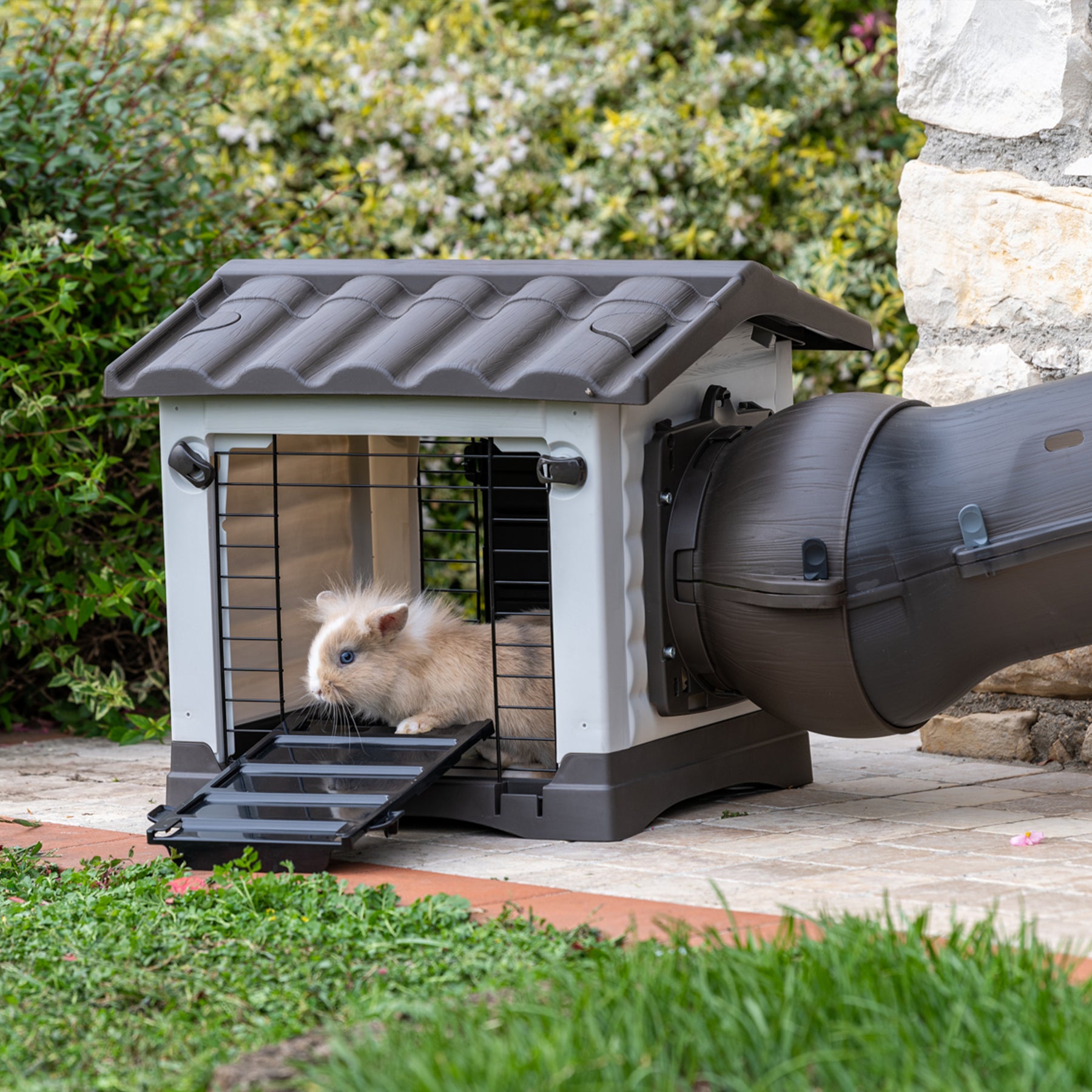 Alongside the Metrò Station rabbit house, the range includes the Metrò tunnels, in two colour versions, brown and transparent, and the Metrò Junction universal fitting kit, essential for connecting Metrò pipes to cages or animal enclosures.
