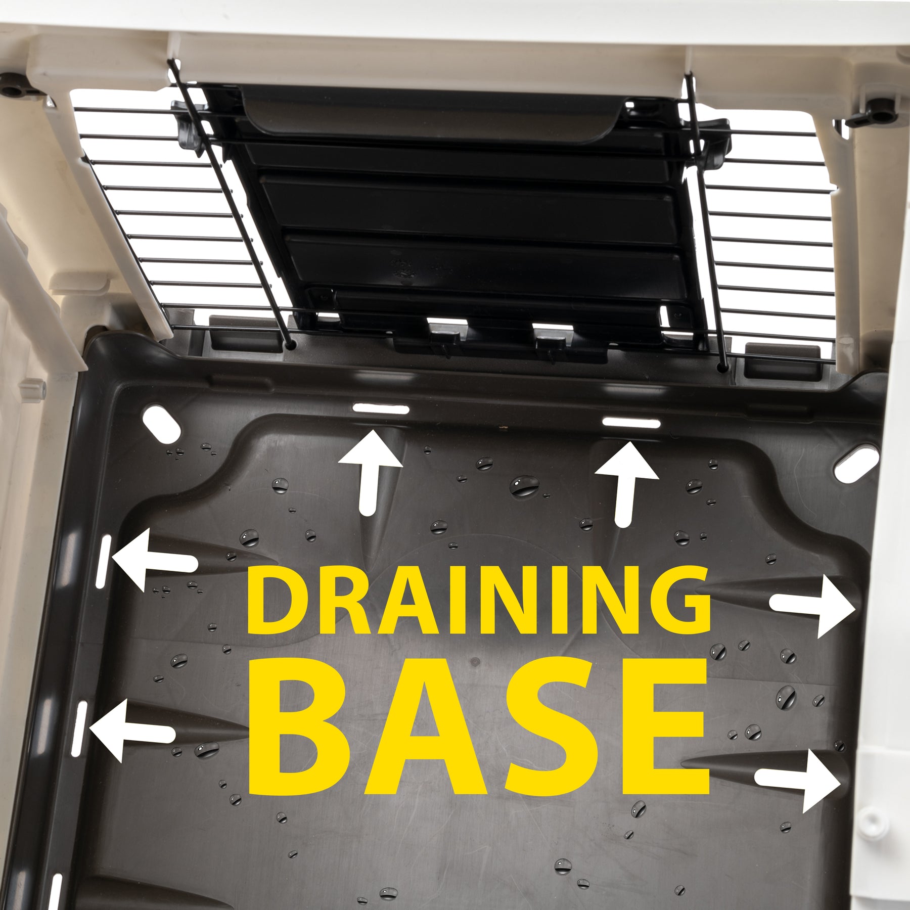- Bottom with internal liquid drainage system, always dry environment