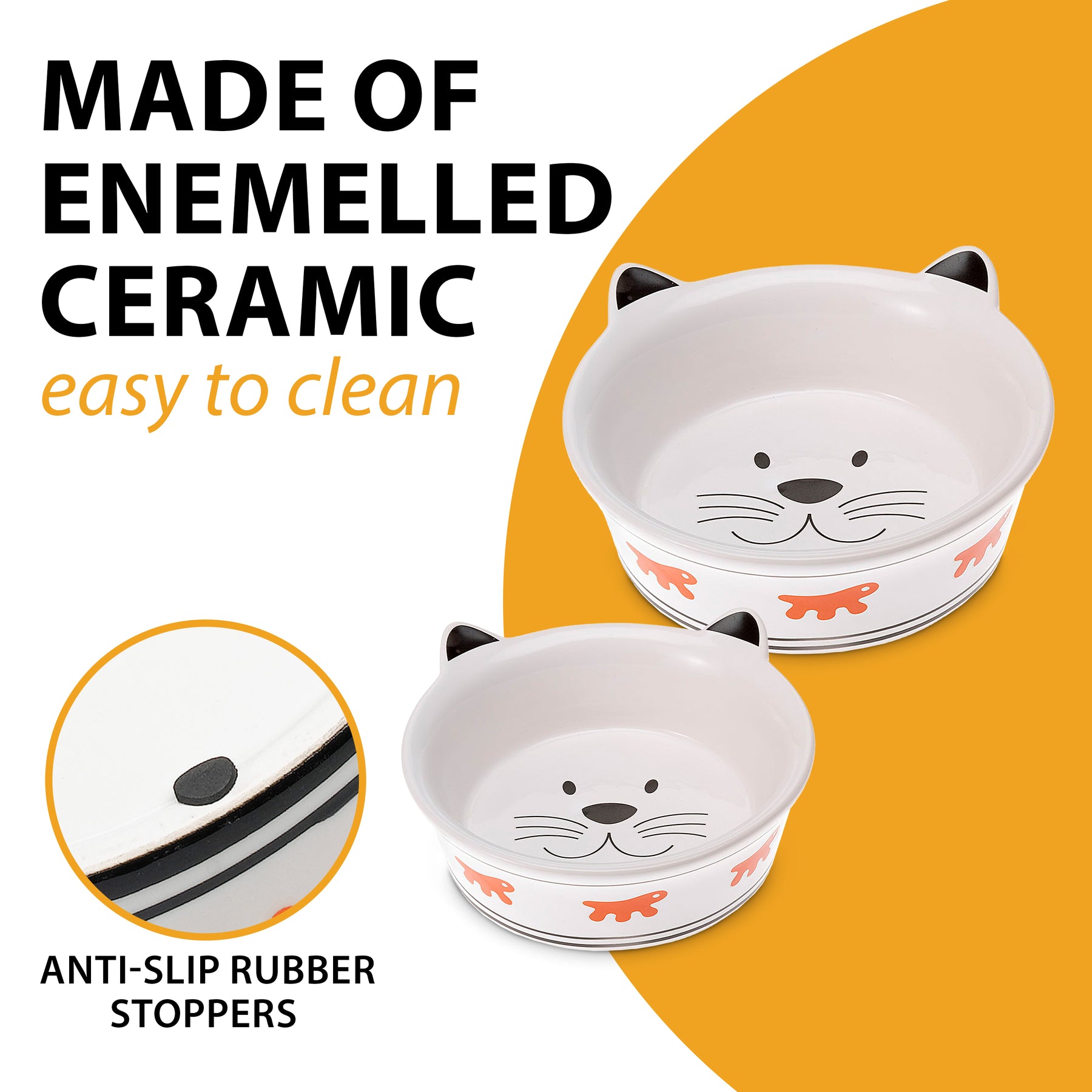 The Venere cat feeding bowl is made of nicely finished glazed ceramics. Its shape and decorations are undoubtedly original and remind you of a cat's face.
