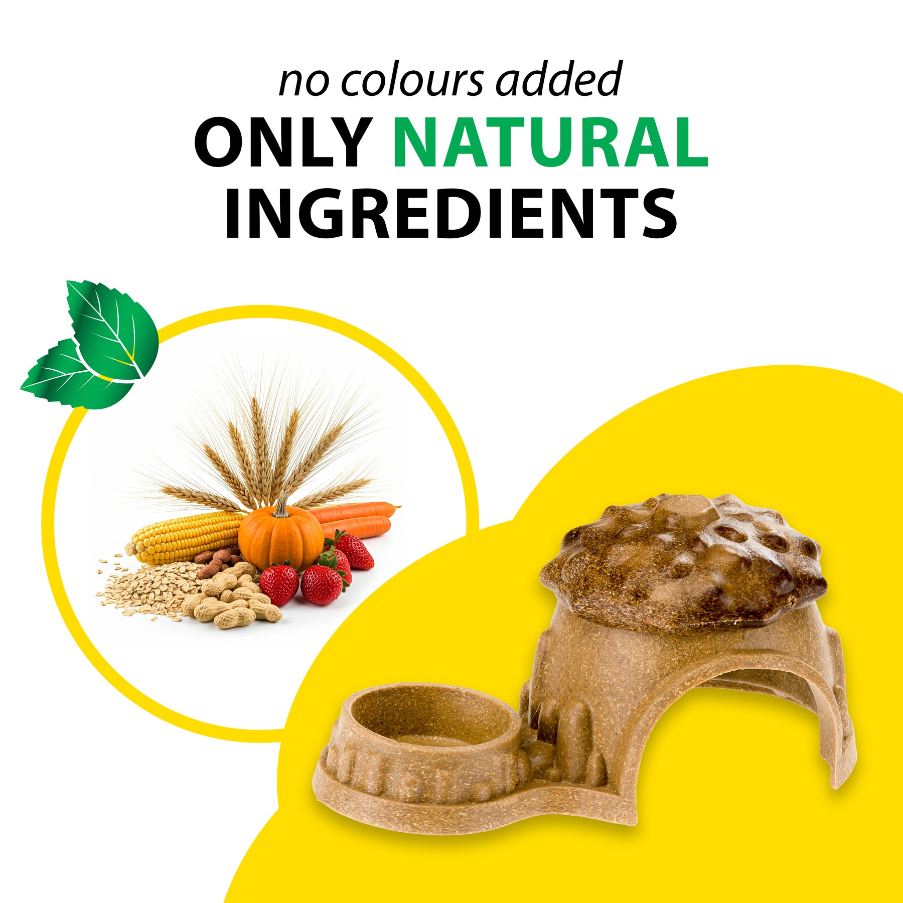 A forma divertida de casinha transforma o momento do snack numa atividade estimulante, ajudando a reduzir o stress e o tédio e incentivando comportamentos naturais como roer.