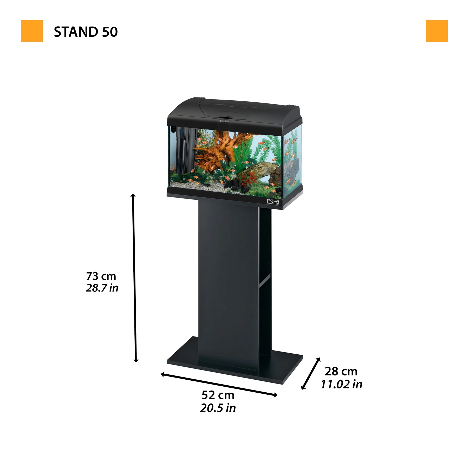 Stand 50 é o suporte ideal para os aquários Capri 50 ou Cayman 50.