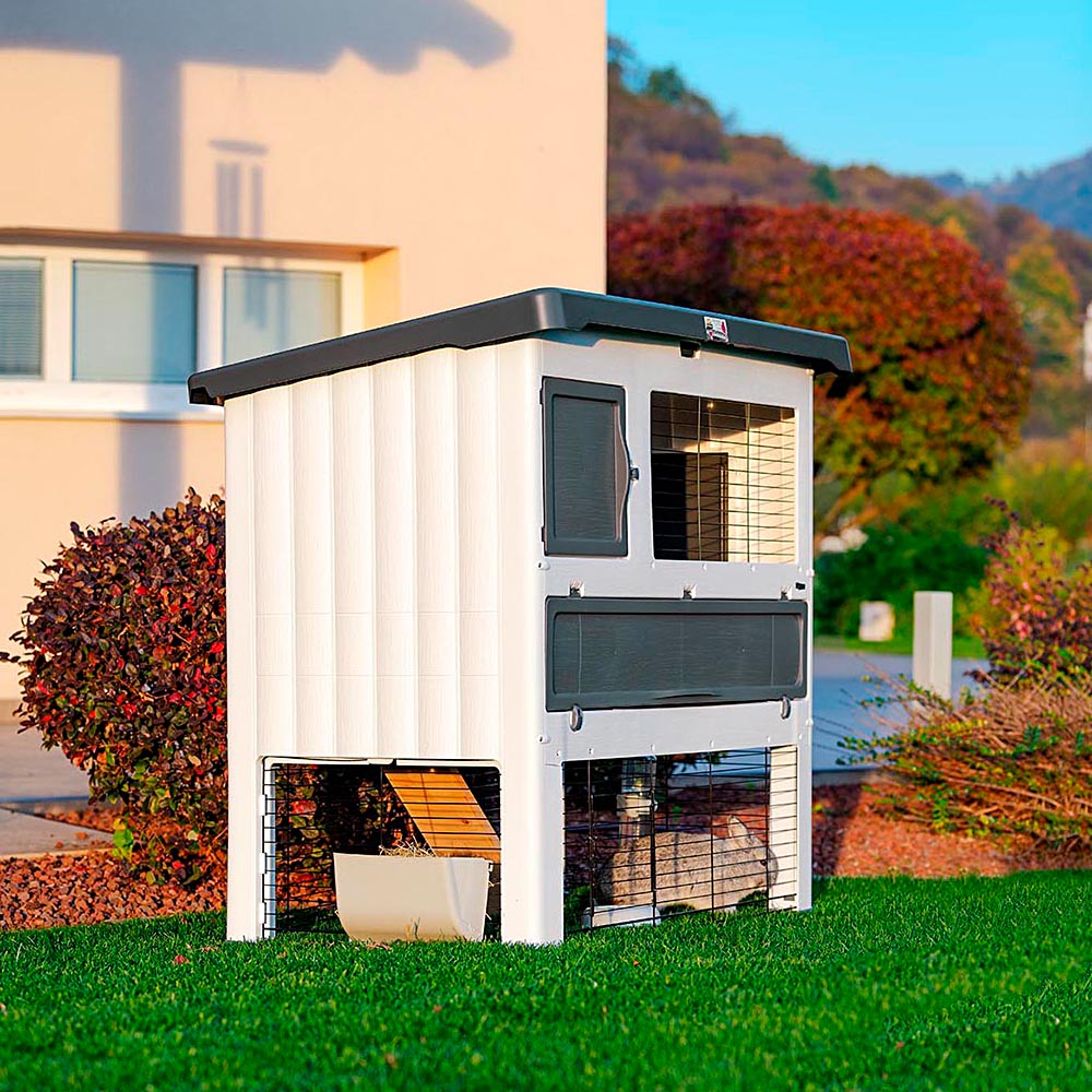 Grand Lodge é uma coelheira ampla e confortável feita de resina termoplástica. O habitat, adequado para uso externo, é indicado tanto para coelhos quanto para porquinhos-da-índia e está disponível em dois tamanhos diferentes.