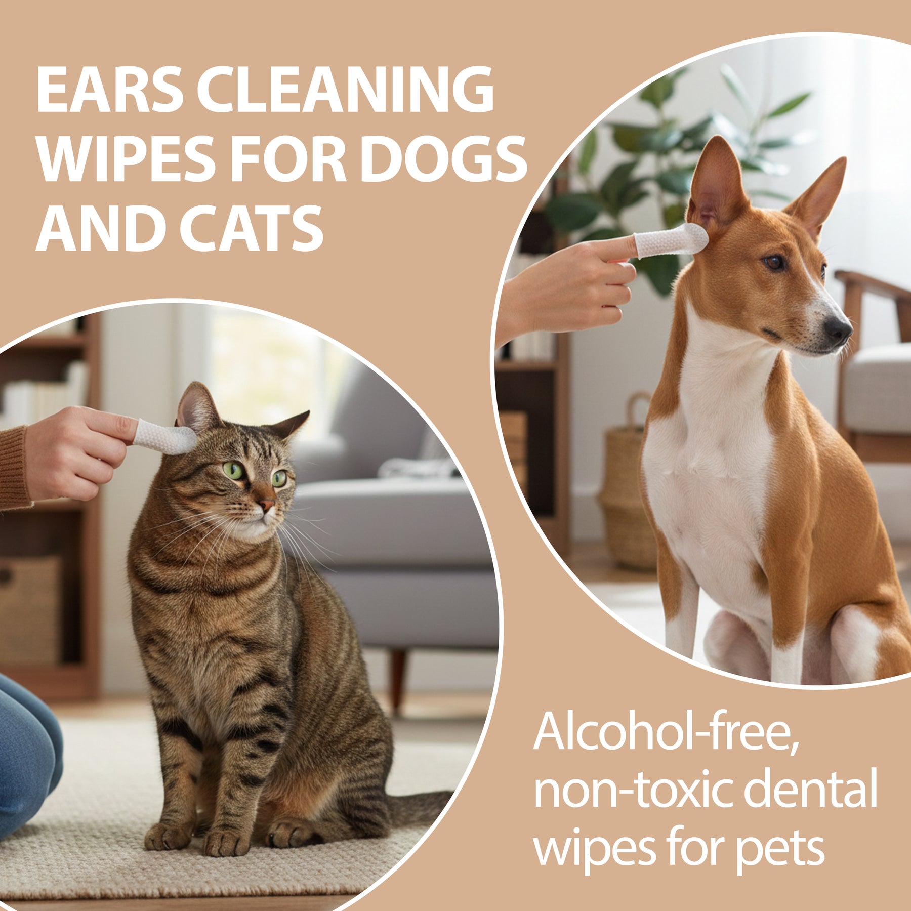 Dita guantate monouso per una pulizia delicata delle orecchie di cani e gatti. Senza profumo, ideali anche per un uso frequente.