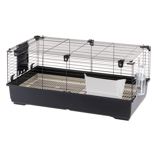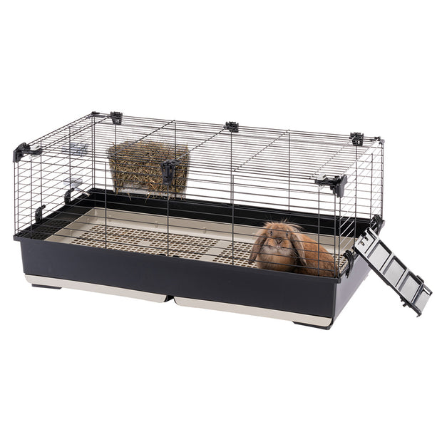 - Клетка для кроликов и морских свинок Прочная окрашенная металлическая решётка Угловые опоры и фиксирующие зажимы для большей прочности Вместительный поддон для сбора грязи и мусора Два съемных подноса для легкой очистки Гигиеническая решётка из пластика предотвращает контакт животного с мочой и грязью Боковая лестница позволяет животному самостоятельно выходить и заходить Полностью открывающаяся крыша, оснащенная закрывающими зажимами, предназначенными для большей безопасности животного Клетка легко собирается и разбирается для чистки
