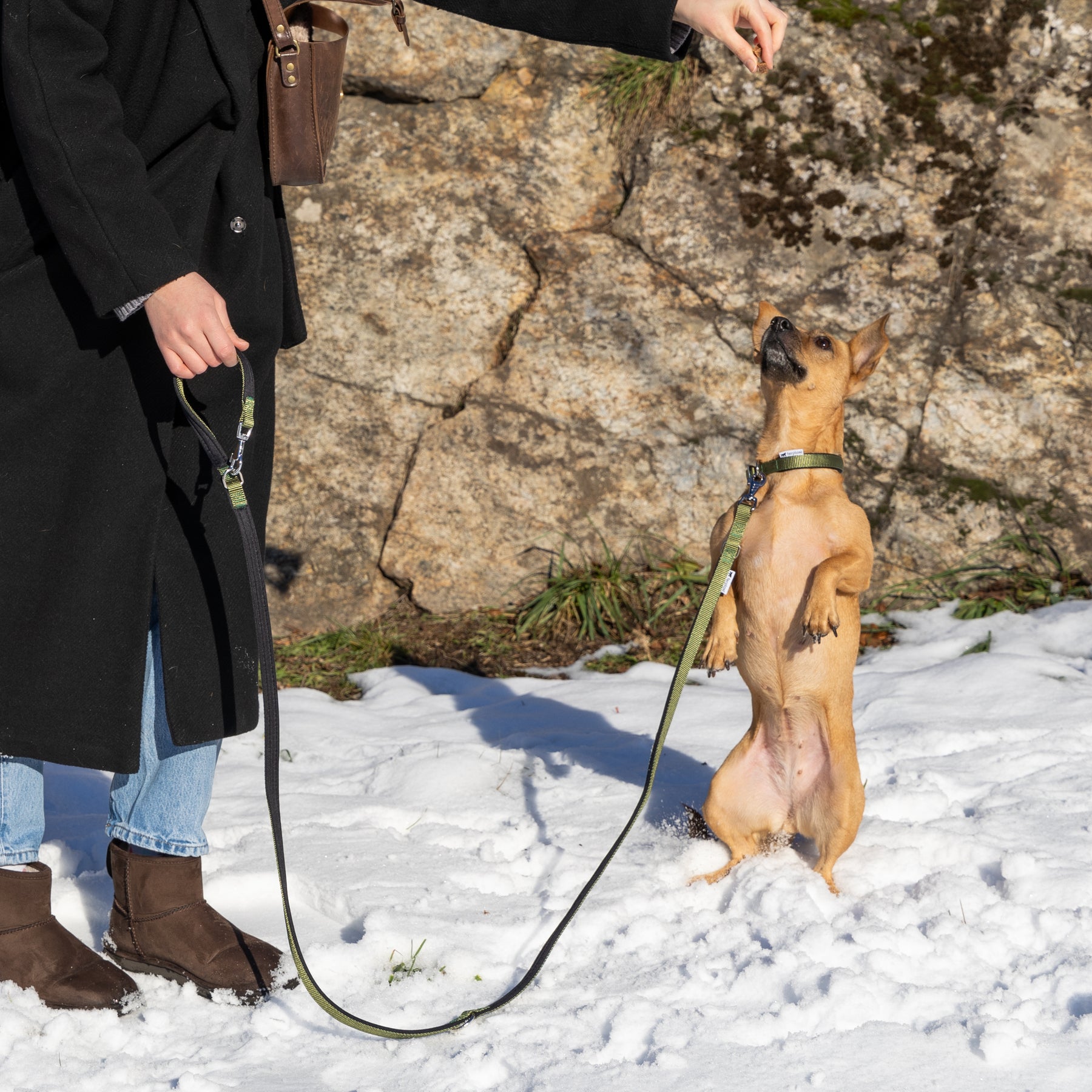 Daytona GA - идеальный поводок для обучения: благодаря системе колец и карабинов вы можете отрегулировать его длину по своему желанию. Крепкий и надежный, этот поводок изготовлен из нейлона - материала, который является достаточно прочным, чтобы выдерживать тяговое усилие собаки при обучении. Мягкая эргономичная ручка специально разработана для удобного захвата.
