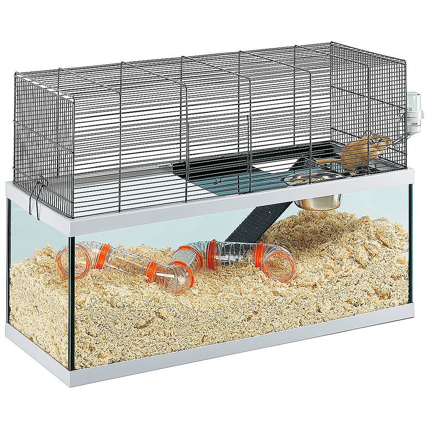 Gabry - стеклянная клетка для песчанок с металлической решеткой и дверками, которые можно открыть снаружи. Специальная глубина поддона позволяет песчанкам рыть и закапываться в опилках. Прозрачное стекло, из которого изготовлена нижняя часть клетки, обеспечивает хороший обзор внутреннего содержания клетки. Клетка Gabry выпускается трех размеров в соответствии с потребностями питомца. Все клетки оснащены металлической полкой с лесенкой и стальной миской, а также поилкой. Большие модели Gabry 60 и 80 также оборудованы прозрачными пластиковыми туннелями для игр.