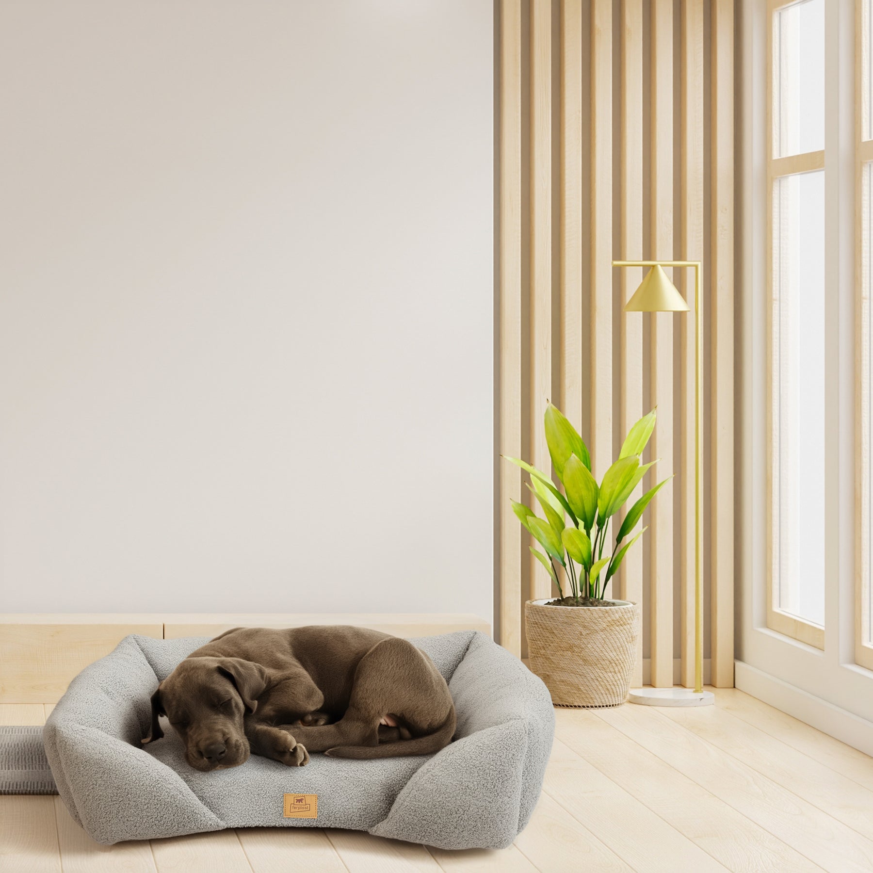 Диван для собак и кошек Pamper Bouclé сочетает стиль и элегантность с комфортом и функциональностью, предлагая вашему питомцу уютное место для отдыха. Изготовлен из мягкой синтетической ткани букле, особенно нежной и тёплой, он обеспечивает комфорт, защиту и расслабление в любое время дня.