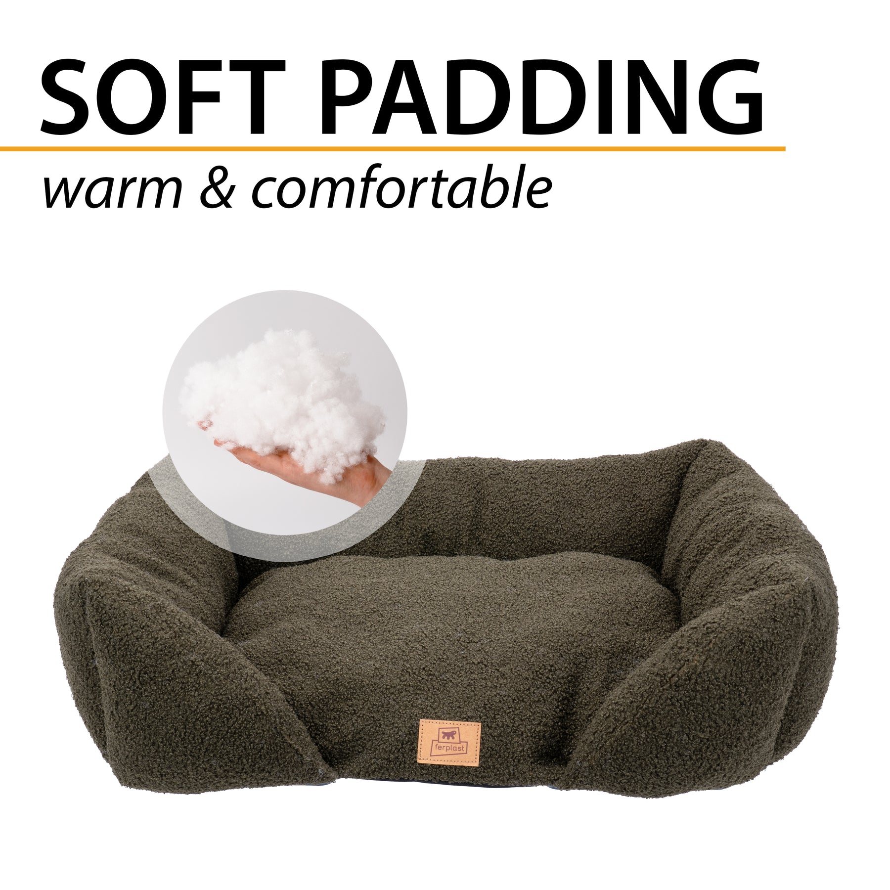 Прямоугольная форма с низким передним краем облегчает вход и выход животного, а высокие бортики создают ощущение защищённости и уюта, превращая диванчик в мягкое и надёжное укрытие. Мягкий наполнитель обеспечивает дополнительное удобство и комфорт, обволакивая вашего любимца теплом и заботой.