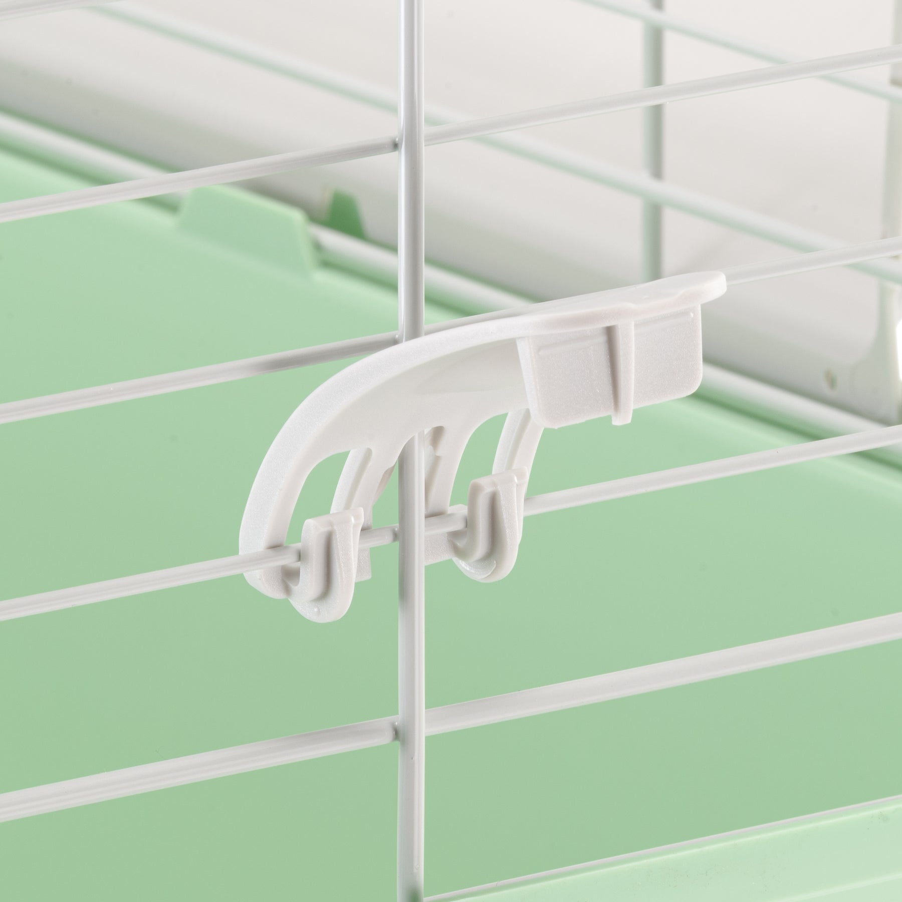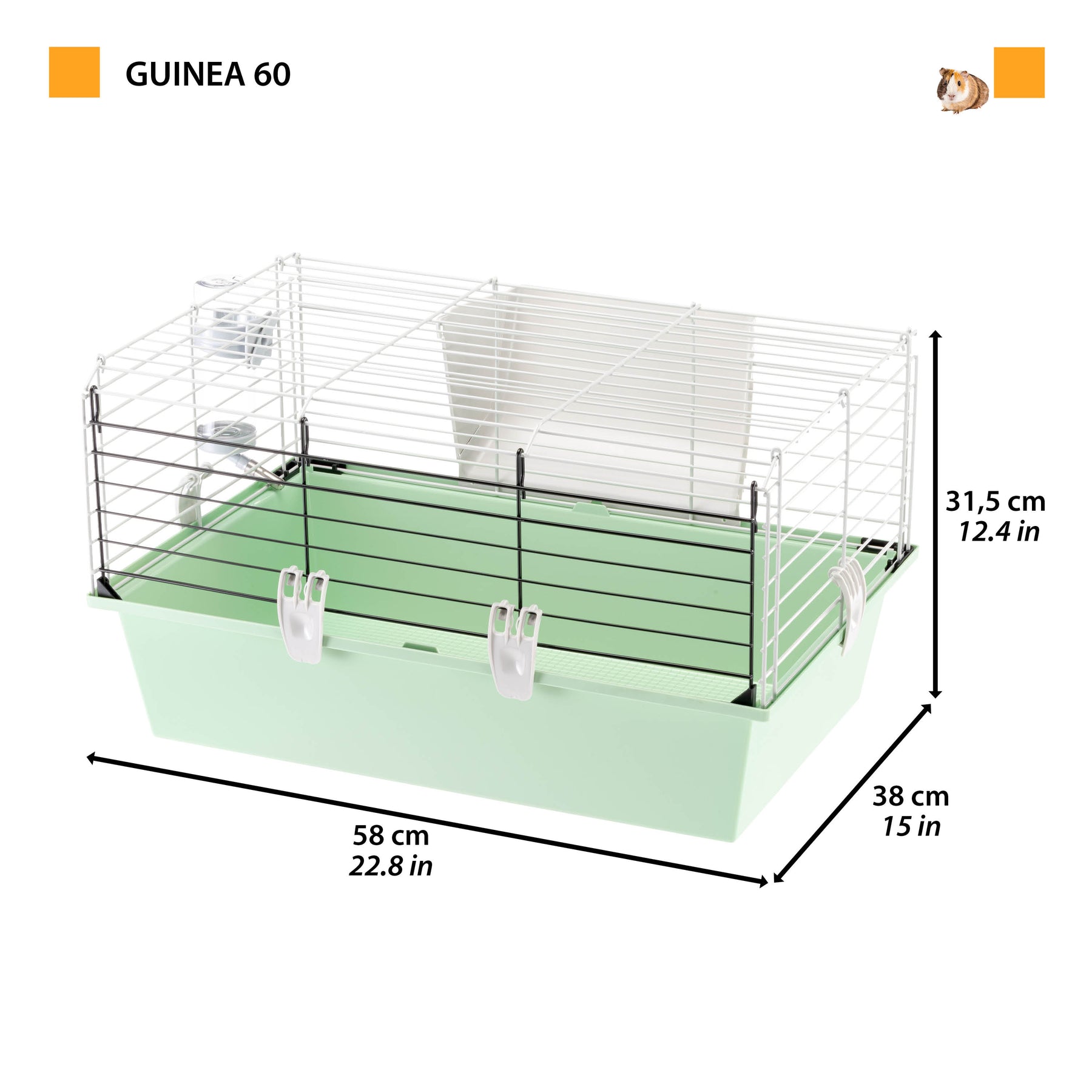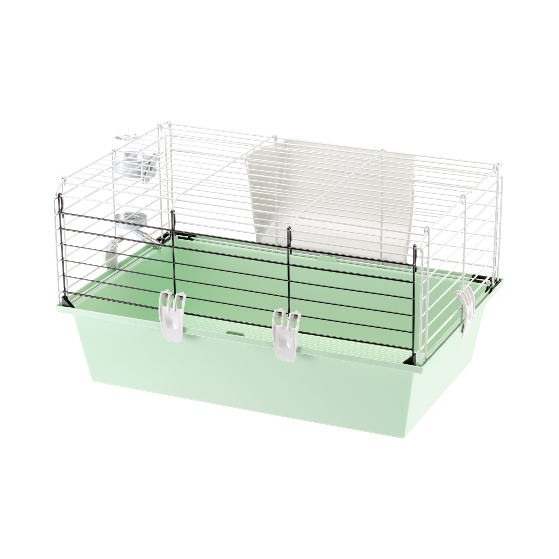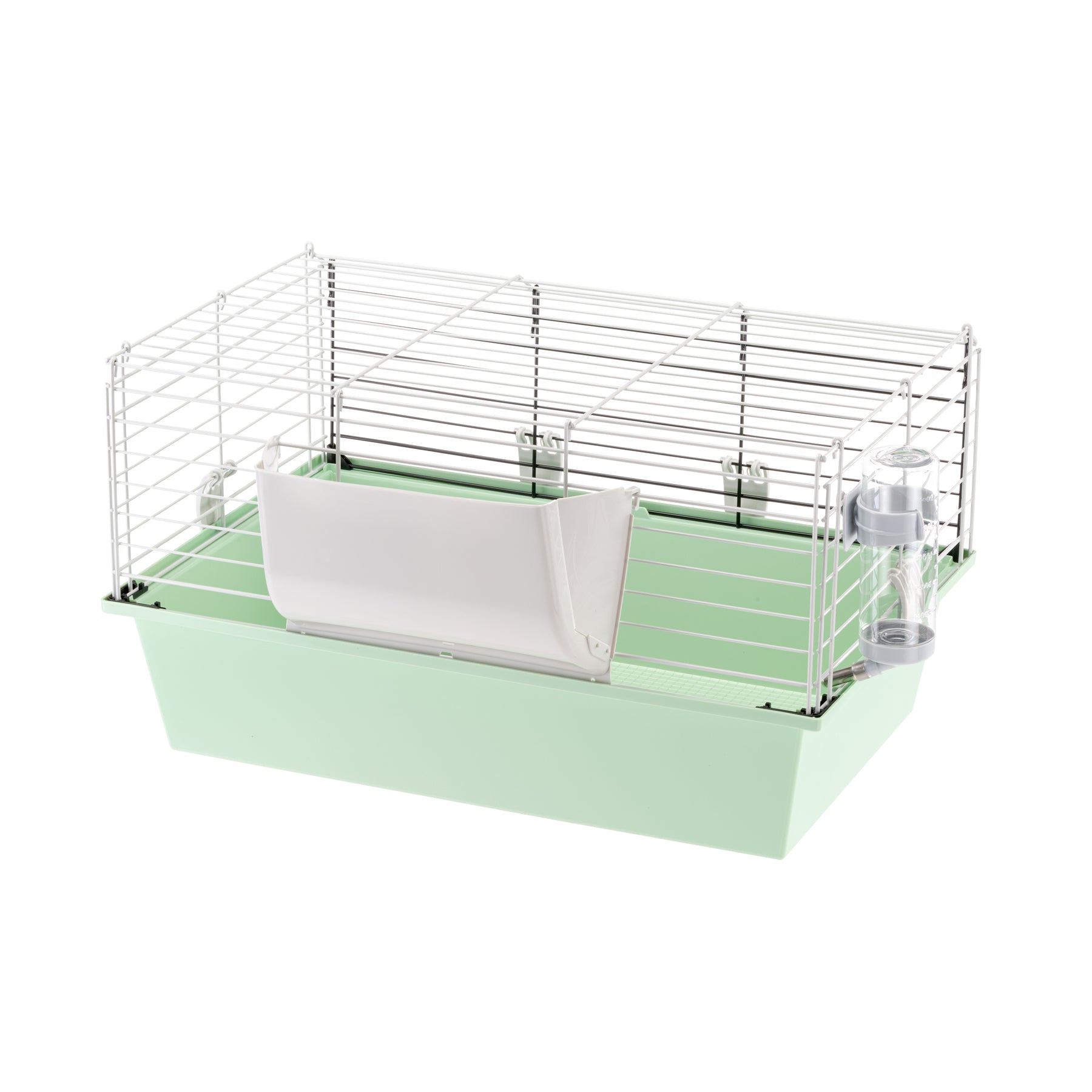 Cavie 60是一个豚鼠笼,最近更新了打开和关闭系统,确保您的小宠物完全安全。住宅采用传统结构,塑料底座和漆包线网状结构。前面的门可以完全打开,便于清洁。在里面,你会发现一些配件,包括一个饮料瓶和一个用来喂干草的塑料喂料器。Cavie 60是节约空间品牌系列的环保产品。它以节省空间的包装出售,可以完全拆卸。