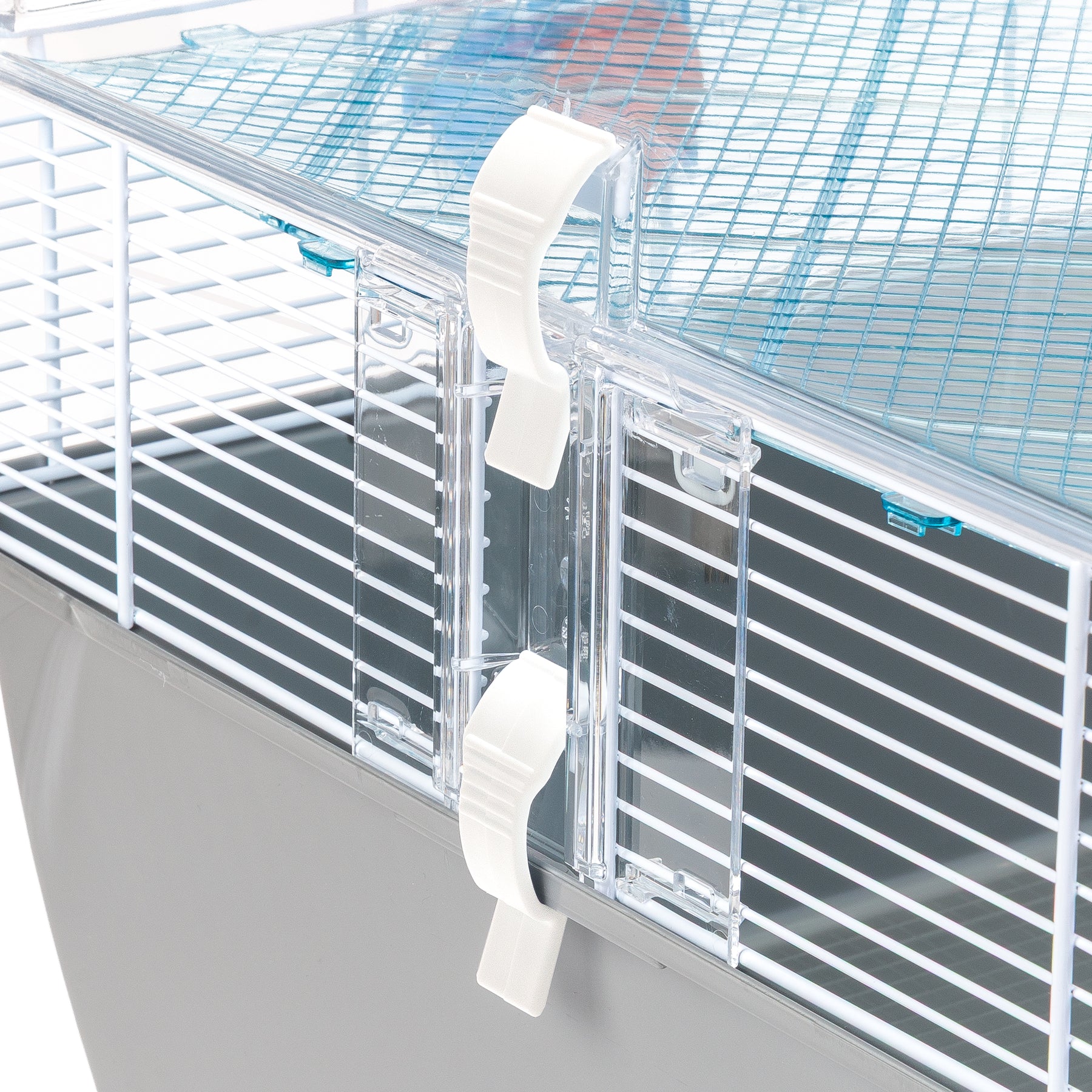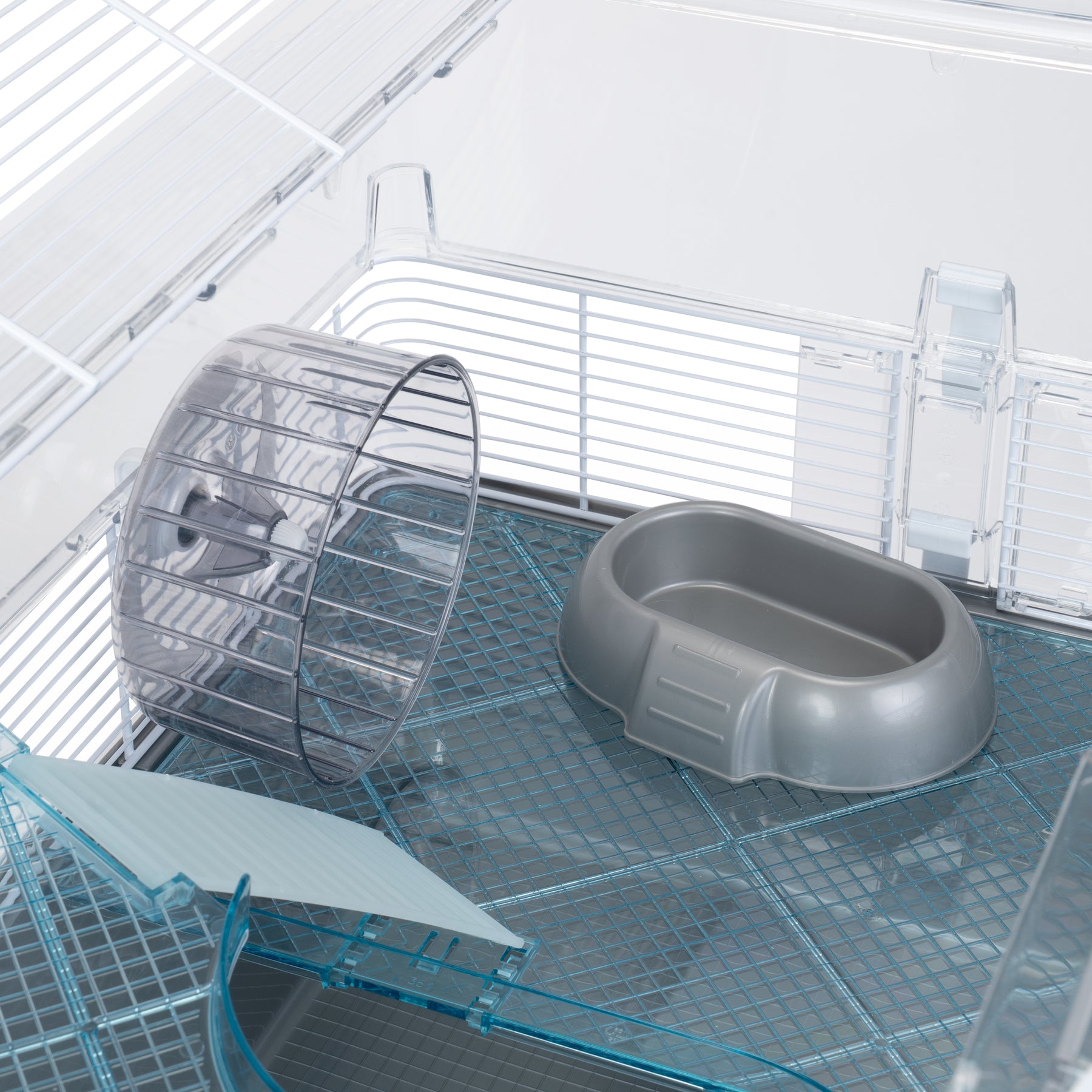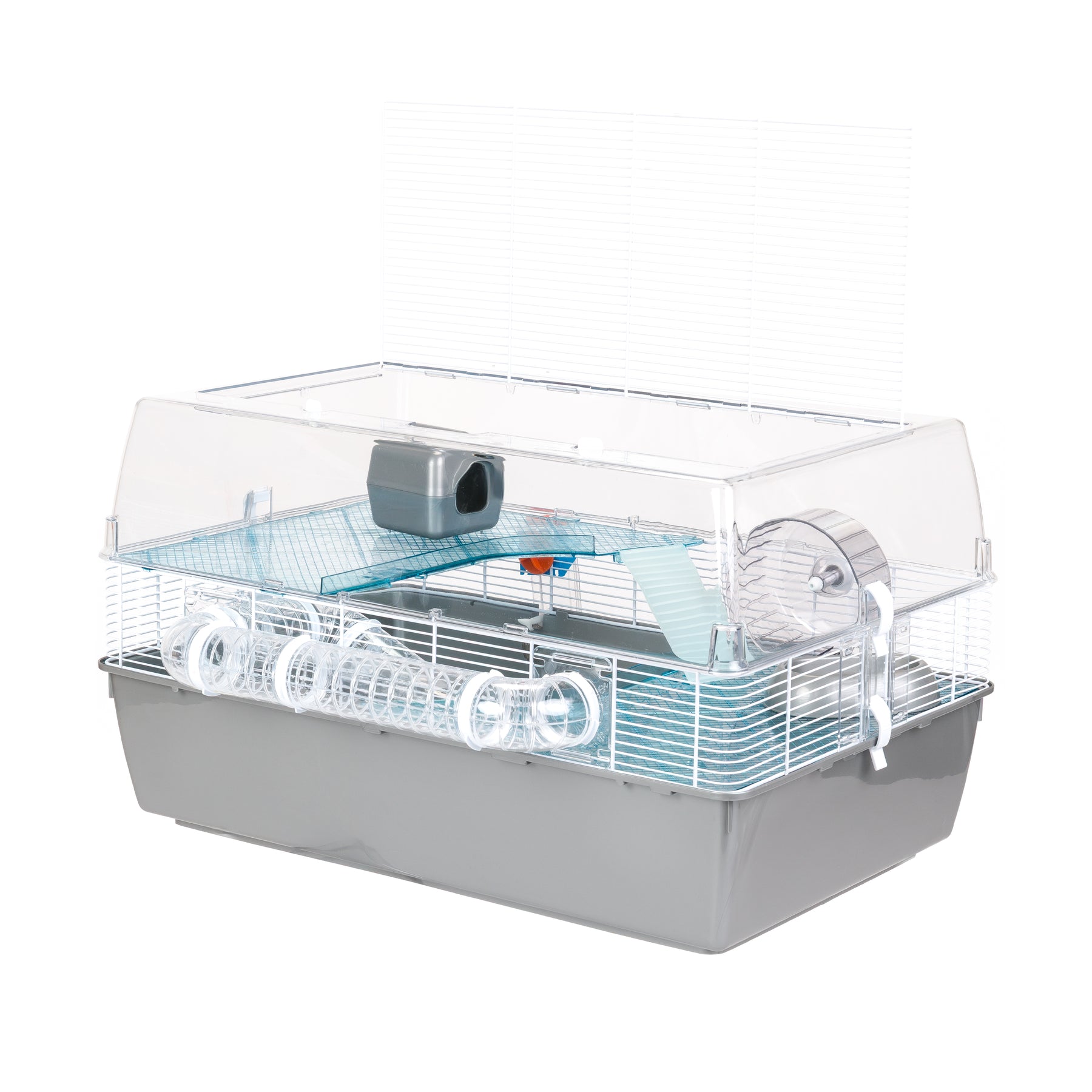 “Duna Fun Large是一个很大的仓鼠笼子,有很大的底座。这个宽敞的版本包括三个层次,包含每一个舒适,包括一个巢,梯子,一个饮料瓶,一个轮子和透明的管子,必要的配件,以确保你的小朋友有乐趣。