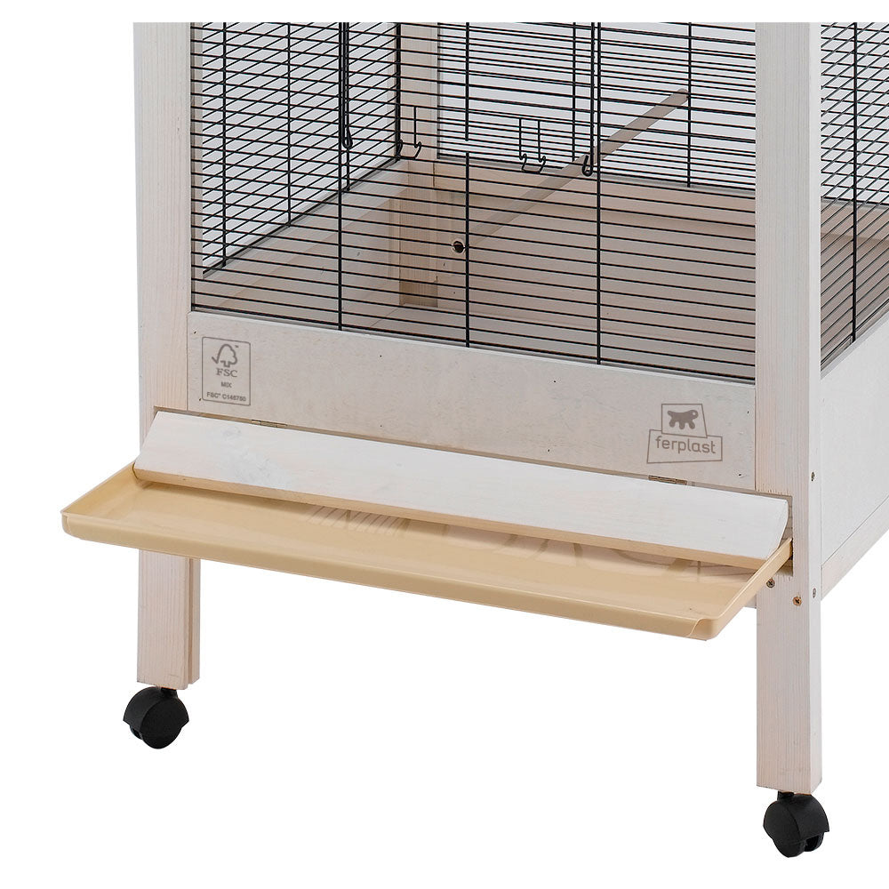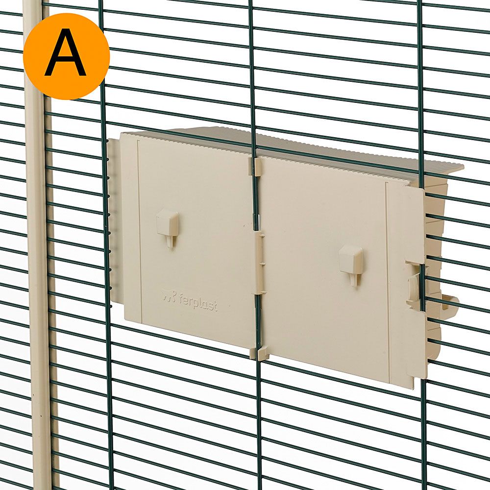 借助其可移动的内部托盘,易于清洁。 并配有轮子,可轻松移动。 此外,对于日常的维护,笼子配有正面和侧面的小型可打开门,所有门均配有安全钩。 笼子的内部可放置各种配件,如栖息器,塑料饮水瓶和Brava 6旋转式喂食器。 旋转喂食器由于其配备的特殊机制,可以旋转180°并轻松快捷地从外部装入食物,而不会留下任何可让禽类逃脱的开口。 鸟笼配有特殊关闭钩的门,该钩特别设计以防止意外逃出等,更加地安全。